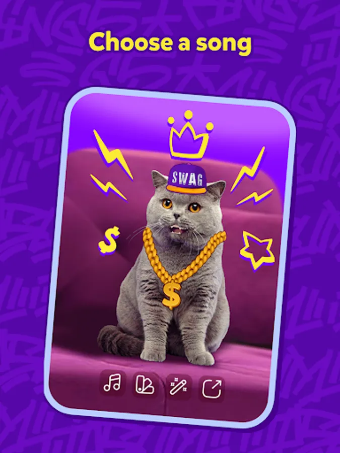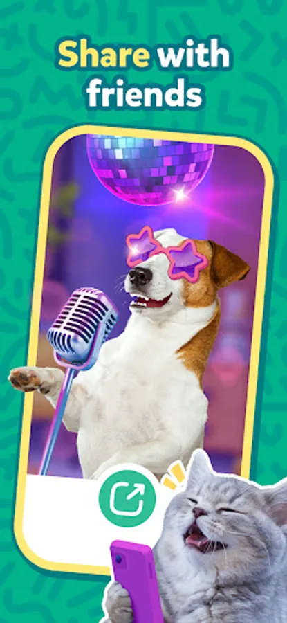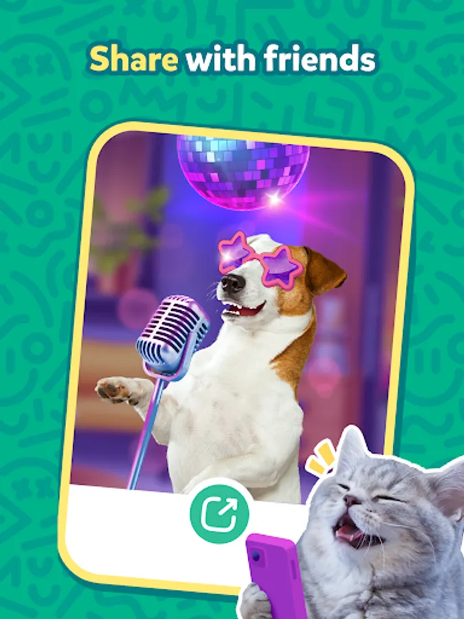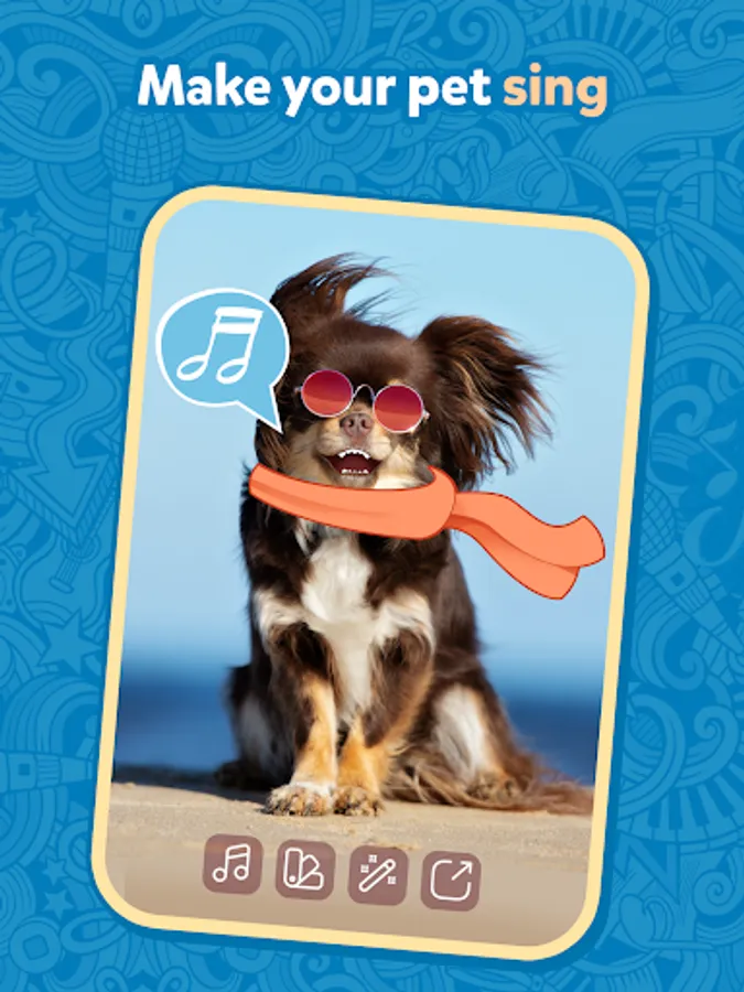 Make a fun music video with your dog or cat. Download viral music videos of your loved ones singing and dancing to your favorite pop songs and share them with friends and family on TikTok, YouTube and social media. Let your pet talk and sing along to your favorite songs.
