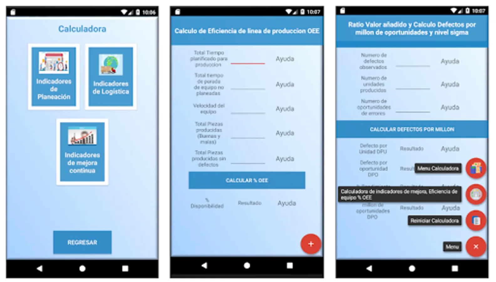 3. Calculator with dozens of planning, logistics and continuous improvement indicators (like% OEE and sigma level) to help you find the problem and measure correctly.