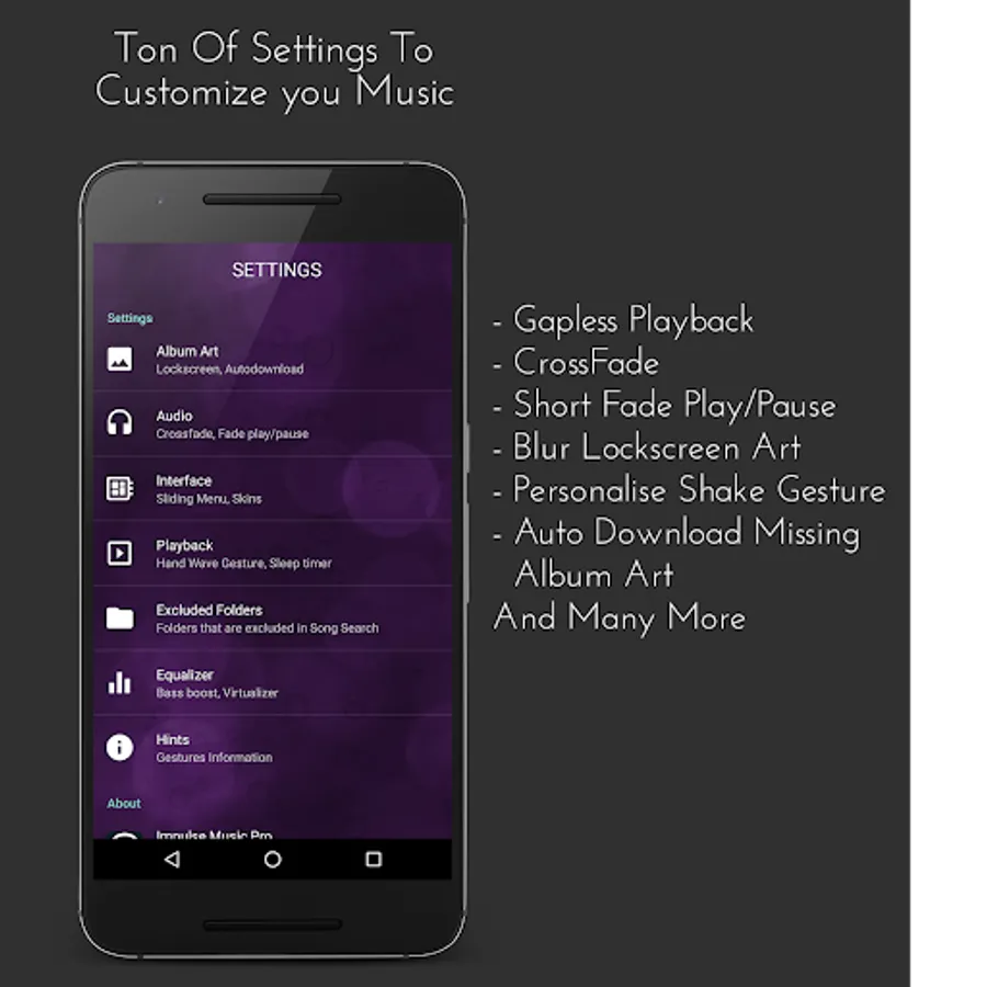 - Hand Wave Gestures - Working on something and want to skip track or pause playback without picking your phone, just wave your hand above your phone and Impulse Music Player will take care of the rest.