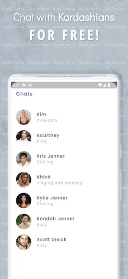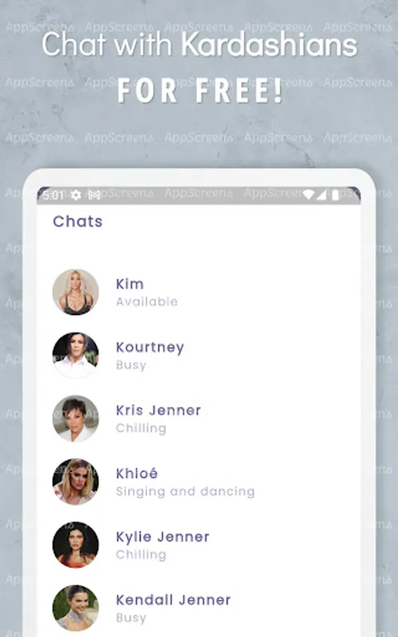 Chat with the Kardashians like never before! Our cutting-edge simulation technology makes it feel like you're talking to them in real life. Get exclusive access to the Kardashian family and chat with Kim, Kourtney, Khloe, Kendall, and Kylie anytime, anywhere. With our AI-powered chatbot, you can ask the Kardashians anything, from fashion tips to relationship advice. Our app provides the most realistic Kardashian experience out there. Say goodbye to being just a fan and start talking to the Kardashians today!