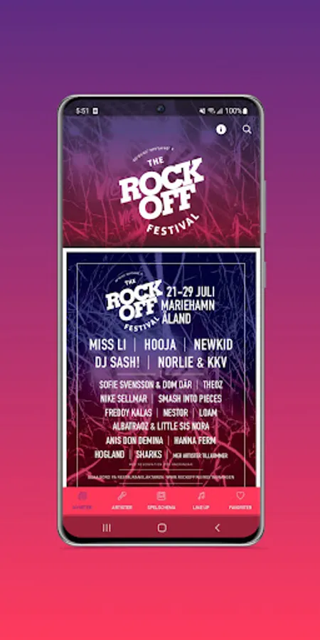 The official Rockoff Festival Mariehamn 2023 app allows you to browse though the festival program, events and activities that happens during the 9-day festival.