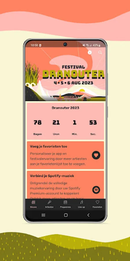 De app die onmisbaar is op Festival Dranouter! Blijf op de hoogte van alle nieuwtjes & updates. Zo moet je niets missen van alle festiviteiten!
