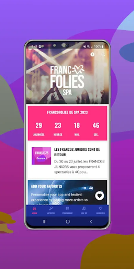 Download the official Francofolies de Spa 2023 app and prepare your visit to the festival! You will find all the useful information there so you don't miss any of the concerts and take full advantage of the event.