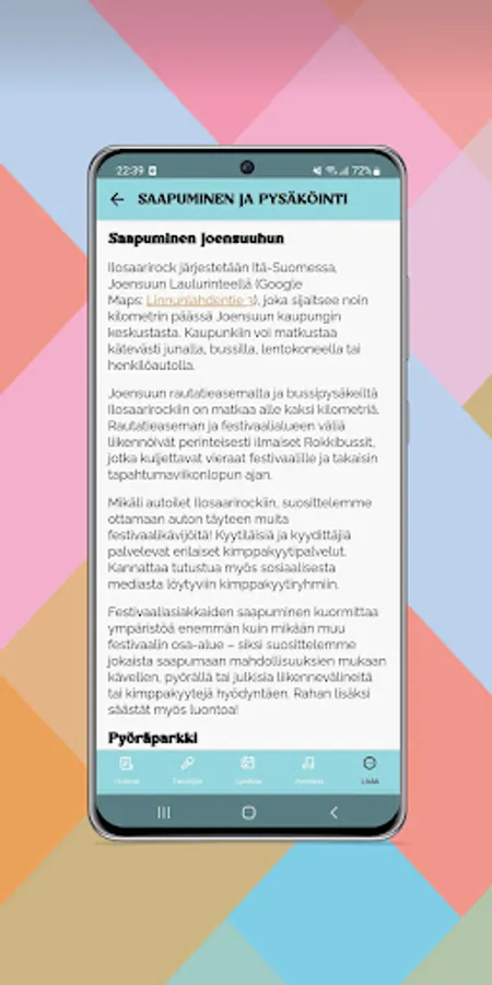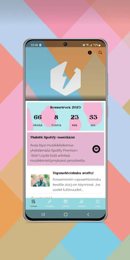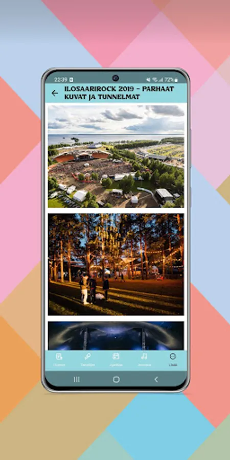 Ilosaarirock's official, year-round mobile app for the best festival experience of the summer! Keep the festival's latest news, most important information, program and schedules, as well as the performance times of your favorite artists conveniently at hand at all times with the help of the real-time application. Ilosaarirock 2023 will be held in Joensuu from the 14th to the 16th. July. See you at Laulurintine!