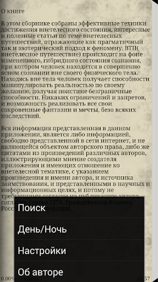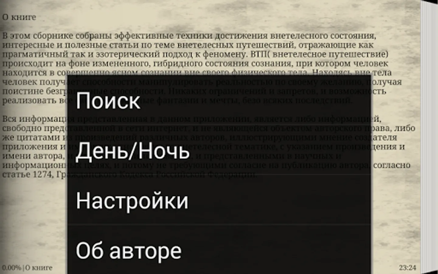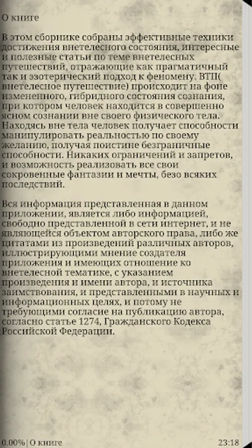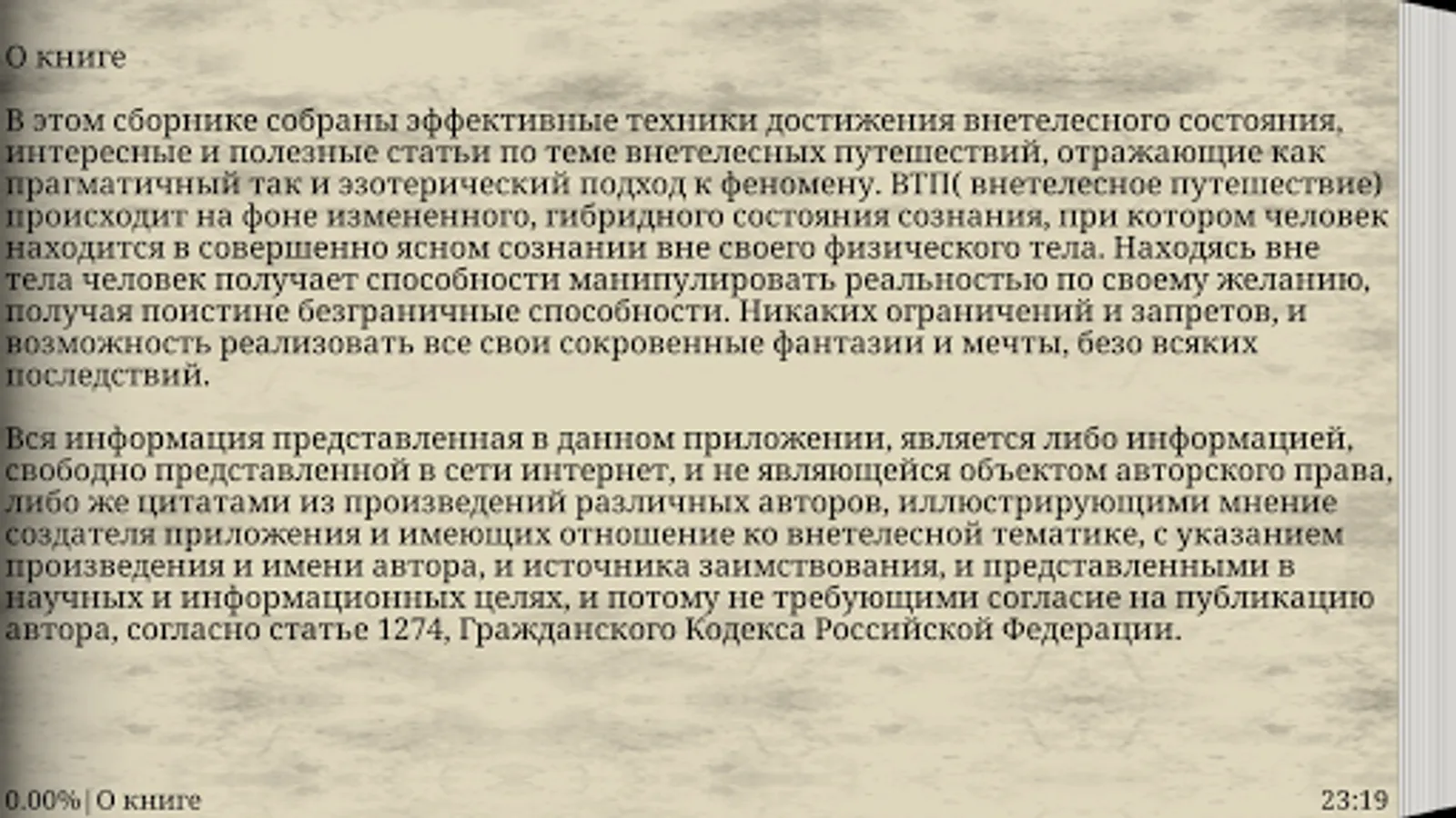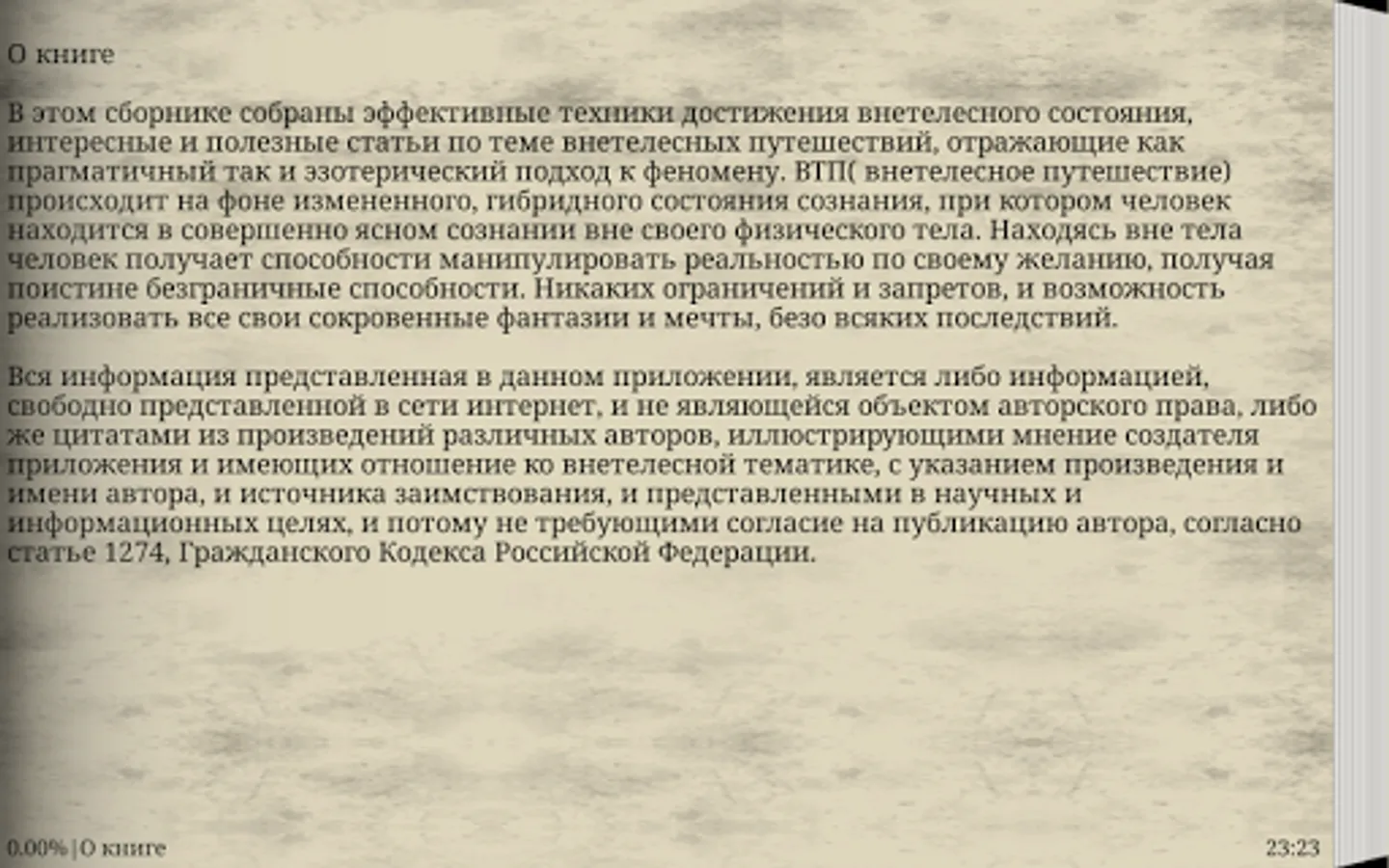 In this application, collected effective techniques to achieve OBE state (phase out of the body, a lucid dream) interesting and useful articles on the subject out of body travel, reflecting both pragmatic and esoteric approach to the phenomenon. ECP (out of body travel) against a background of change, the hybrid state of consciousness in which a person is in a very clear consciousness outside of the physical body. It is outside the body a person receives the ability to manipulate reality at will, getting limitless abilities. There are no restrictions and prohibitions, and the opportunity to realize all their secret fantasies and dreams, without any consequences. You can appreciate more than 500 articles about the EPR.