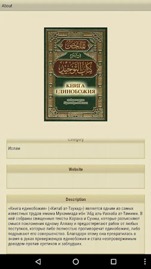 "Book of Monotheism" ( "Kitab al-Tawhid") is one of the most famous works of Imam Muhammad ibn 'Abd al-Wahhab al-Tamimi. The book contains the sacred texts of the Koran and the Sunnah, which clarify the meaning of the worship of Allah alone and warn of slaves from any actions, which are either completely contrary to monotheism, or undermine its perfection. Because of this it has become a banner in the hands of the followers of monotheism and was the irrefutable argument against the heretics and misguided.