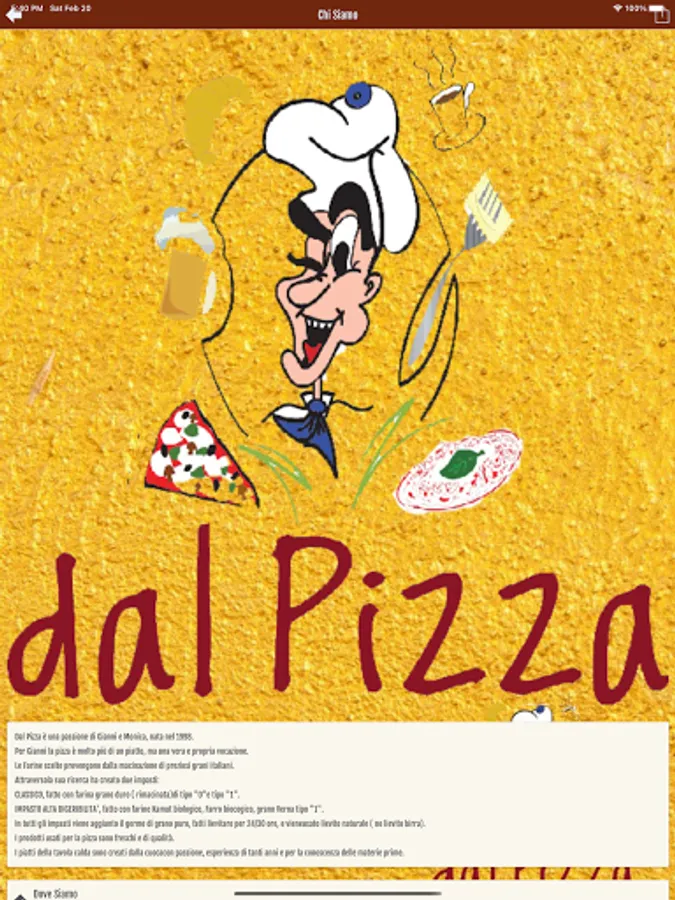 Dal Pizza is a passion of Gianni and Monica, born in 1998. For Gianni, pizza is much more than a dish, but a real vocation. The selected flours come from the grinding of precious Italian grains. Through his research he created two doughs: CLASSICO, made with type "0" and type "1" durum wheat flour (remilled). HIGH DIGESTIBILITY DOUGH, made with organic Kamut flours, organic spelled, Verna wheat type "1". In all the doughs pure wheat germ is added, left to rise for 24/30 hours, and natural yeast is used (no brewer's yeast). The products used for the pizza are fresh and of quality. The dishes of the diner are created by the cook with passion, experience of many years and for the knowledge of raw materials.