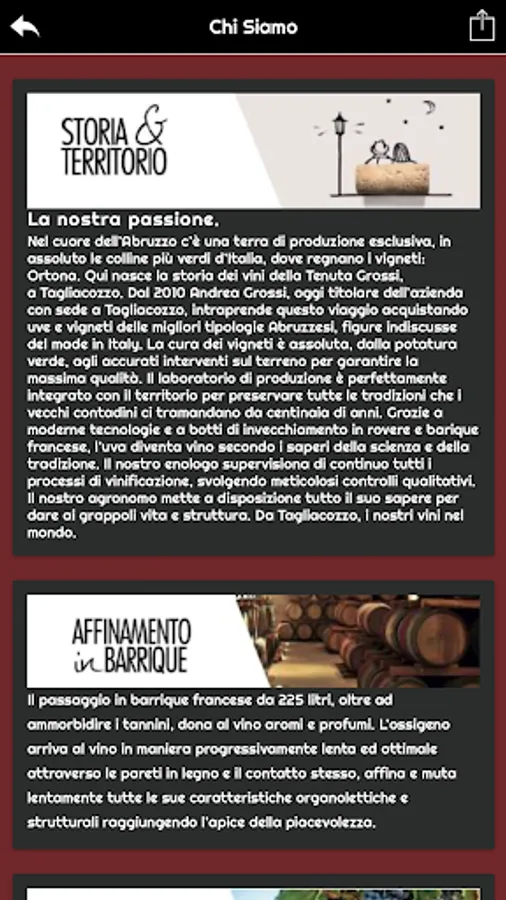 In the heart of Abruzzo there is a land of exclusive production, absolutely the greenest hills in Italy, where vineyards reign: Ortona. Here the story of the wines of Tenuta Grossi, in Tagliacozzo, was born. Since 2010 Andrea Grossi, now the owner of the company based in Tagliacozzo, has embarked on this journey by purchasing grapes and vineyards of the best Abruzzese types, undisputed figures of Made in Italy. The care of the vineyards is absolute, from the green pruning to the careful interventions on the ground to ensure the highest quality. The production laboratory is perfectly integrated with the territory to preserve all the traditions that the old farmers have handed down to us for hundreds of years. Thanks to modern technologies and aging barrels in oak and French barique, grapes become wine according to the knowledge of science and tradition. Our oenologist continuously supervises all the winemaking processes, carrying out meticulous quality controls. Our agronomist makes all his knowledge available to give life and structure to the grapes. From Tagliacozzo, our wines around the world.