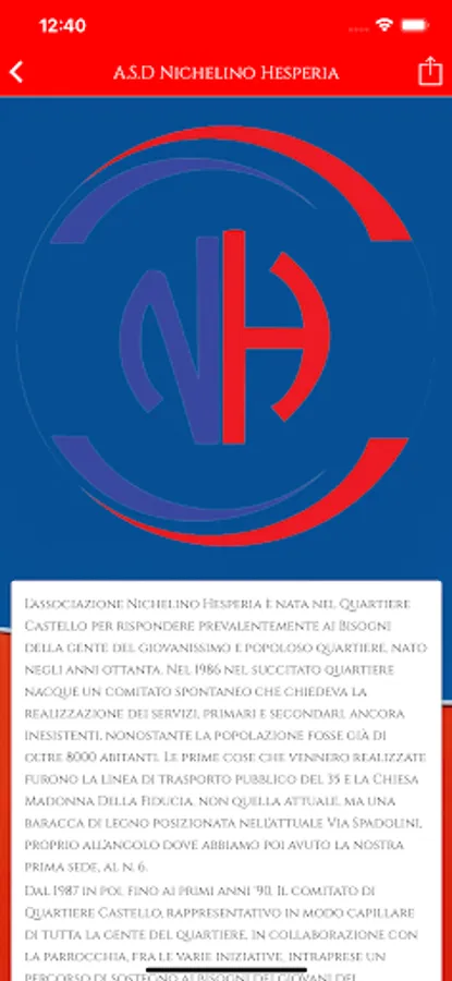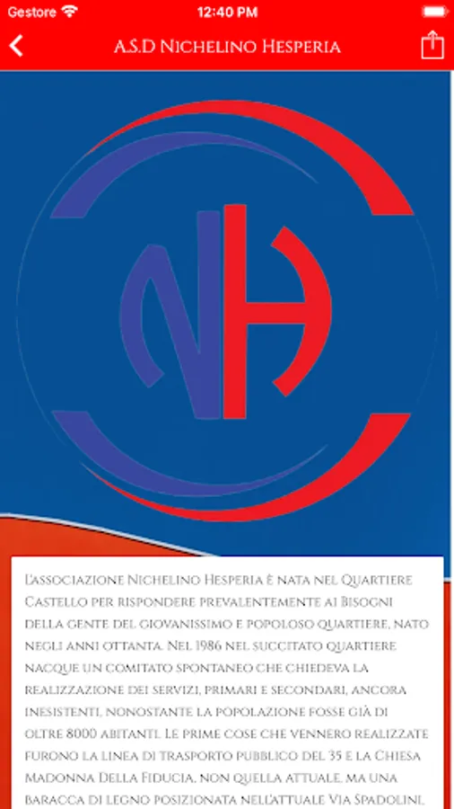 The Nichelino Hesperia association was born in the Castello district to respond mainly to the needs of the people of the very young and populous district, born in the eighties. In 1986 in the aforementioned district a spontaneous committee was born that asked for the construction of primary and secondary services, still non-existent, despite the fact that the population was already over 8000 inhabitants. The first things that were built were the public transport line of 35 and the Madonna Della Fiducia Church, not the current one, but a wooden shack located in the current Via Spadolini, right on the corner where we then had our first headquarters, at no. 6. From 1987 onwards, up to the early 90s, the Castello District committee, which is a widespread representation of all the people of the district, in collaboration with the parish, among the various initiatives, embarked on a path of support for the needs of young people of the district, in particular in the realization of periods (spring - summer) of sporting activities, which involved about 700 children aged 6 to 16, all strictly resident in the Castello district. Since those years, the need to create an autonomous structure from the neighborhood committee was clear. So in 1990 in the Castello District two sports groups were born, without going into the merits of why, two rather than one, after a few years the reality of G.S. Castello, in which Francesco Tripodi held the role of vice president. Francesco Tripodi was thus able to express all his vocative talent for sporting activities, in particular for football, until, in the G.S. Castello lacked the conditions of trust and unity of purpose between the members of the board of directors and the president of the association. At that point, it was the month of May 1996 Francesco Tripodi, Raffaele Terlizzi and other members of the board of directors of the G.S. Castello, decided to give rise to a new sports association, with the scruple of providing it with a democratic and pluralist statutory body, just like the Castello District Committee was governed. In early May, on the occasion of the youth running event aimed at school users, organized by the G.S. Atletica Nichelino, in which Mario Filiziu, former organizer of the sports activities of the Castello District committee, served as manager, Francesco Tripodi shows up at the event in the Nichelino grove, and proposes to Filiziu to join the nascent association. after about two hours of discussion and clarification on the shipwreck of the G. S. Castello, Mario Filiziu decides to join the new project. Thus begins a constituent period, which on May 27, 1996 formalizes the birth of the Polisportiva Castello Hesperia and in the summer months, June, July and August, the training phase of the group of founding members is completed, which stabilizes with the number of 42 members. In order to become a founding member it was necessary to subscribe a quota of 100,000 lire in favor of the association. For the next two years, the 42 founding members were also full members of the board of directors. The first president of the association was Mario Filiziu, vice presidents, Edoardo Calabrò and Giovanni Calabrese, while Francesco Tripodi, by his choice, accepted the position of organizational manager. In the second term, after two years, Mario Filiziu was confirmed president, while Francesco Tripodi was elected vice president. In 2000, Mario Filiziu, for family reasons, no longer gave his willingness to hold the office of president, a position which was then unanimously conferred on Francesco Tripodi.