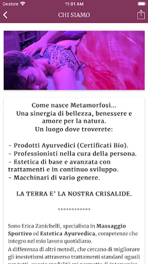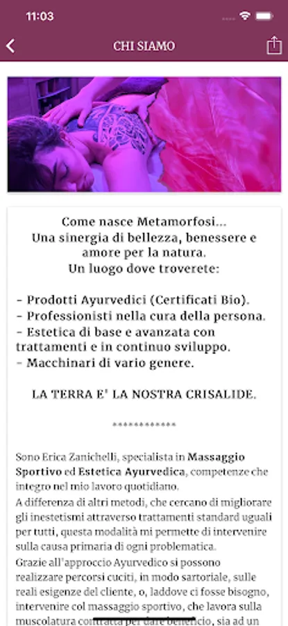 I'm Erica Zanichelli, a specialist in Sports Massage and Ayurvedic Aesthetics, skills that I integrate into my daily work.