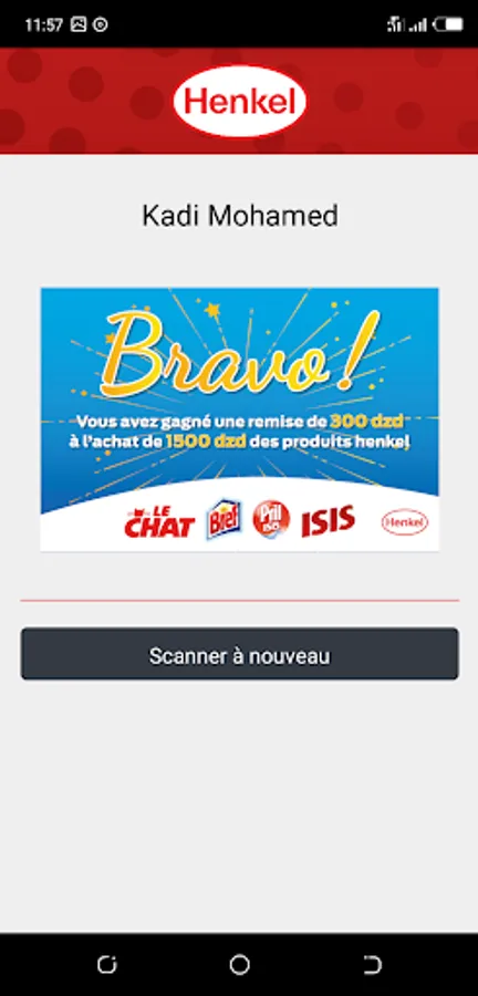 Mobile app for stores to scan Henkel coupons for customers with purchases of more than 1500DA.