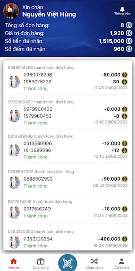 - Convenient payment: Users can make payments at stores, restaurants, ticket counters, and many other services by scanning a QR code or entering the necessary information. The payment process is fast and secure.