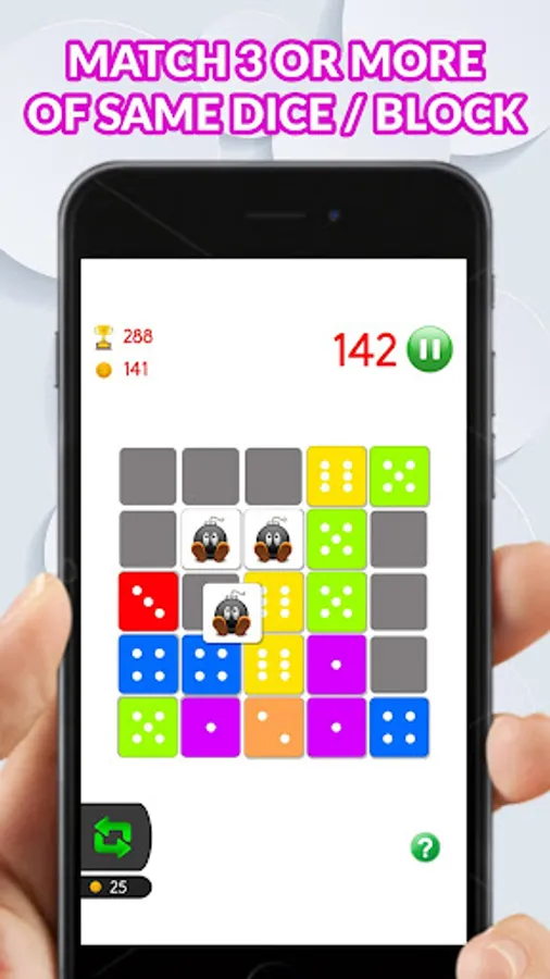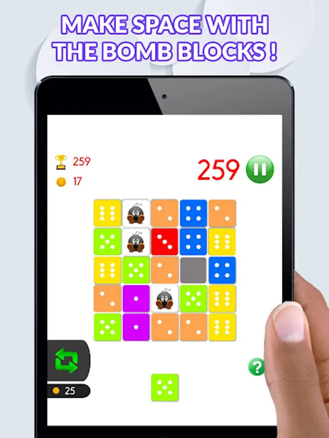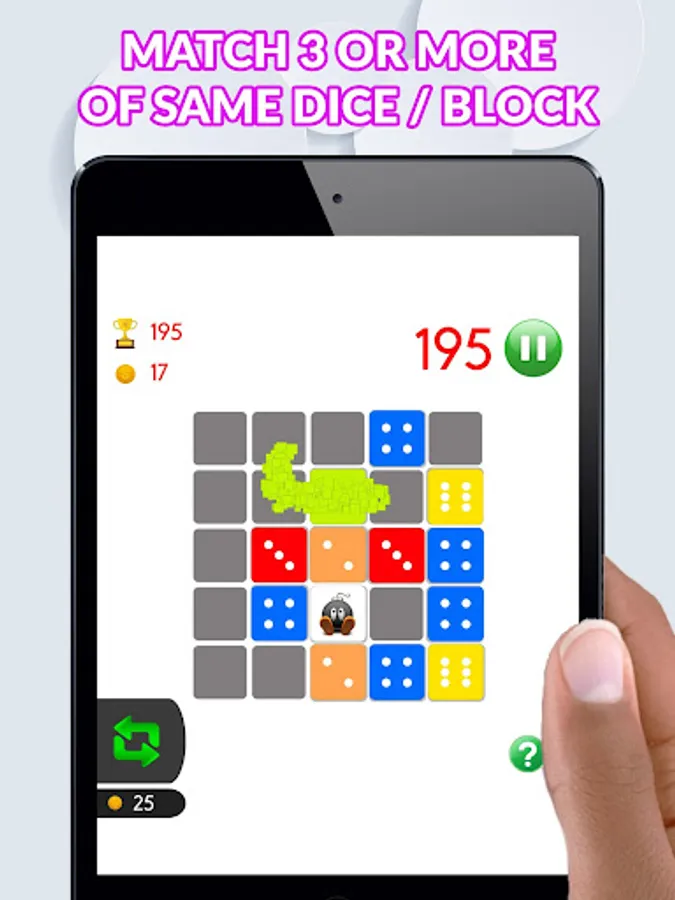 Match 3 or more of the same of the same coloured dice either horizontally, vertically or a combination of both, merge your blocks together and play for hours.