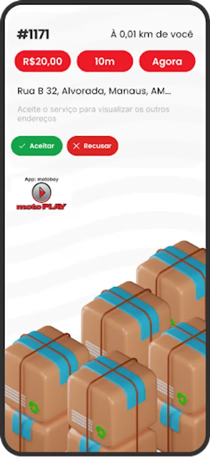This application receives the services requested on this website: https://appmotoplay.com.br. Transport of objects in the central regions, neighborhoods and all of Porto Alegre, Brazil. For you to receive the services it is necessary to install the application, register, then wait for our team to activate your registration.