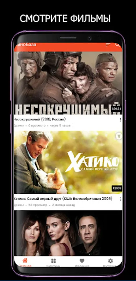The KinoBaza mobile application is an application for a catalog of films, films, documentaries, cartoons, fairy tales and much, much more.