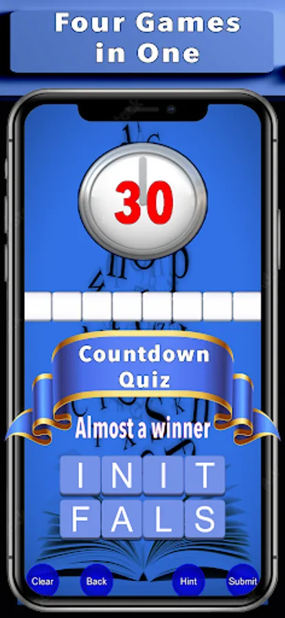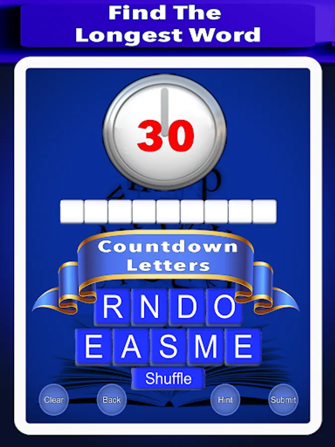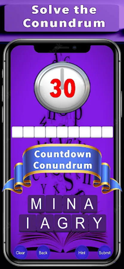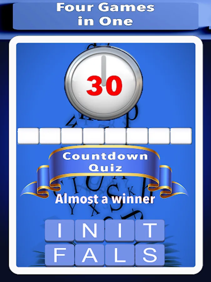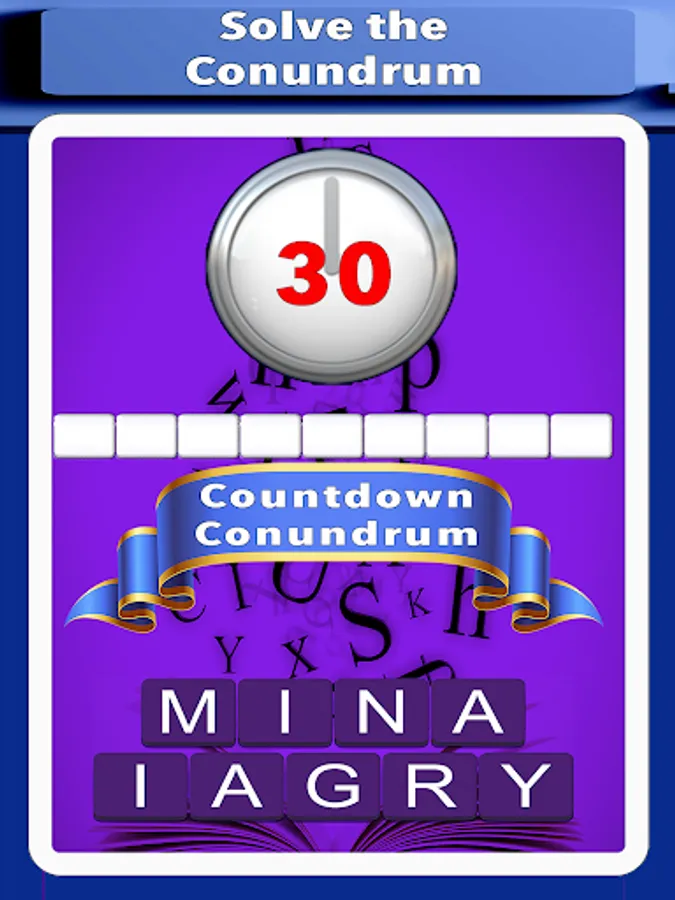 This game combines four games and is based on the TV game show countdown. The word games are based on arranging vowels and consonants to make the longest words.