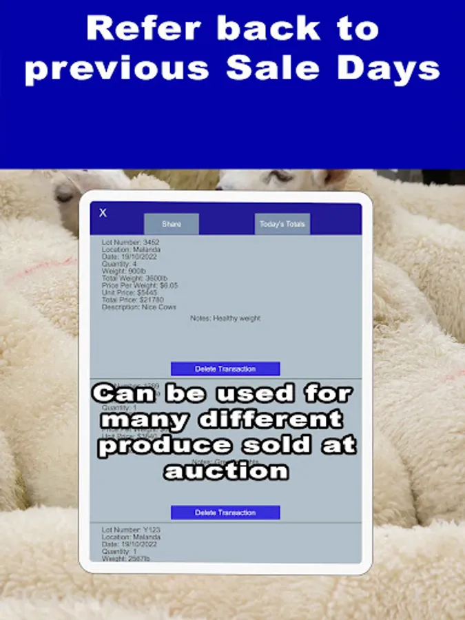 This sale barn calculator can also be used for bidding on and purchasing different animals, sheep, goats, in fact anything that is sold by auction and by weight, kilo or pound. Additional reporting functionality has now been added to really make the app an indispensable tool at auctions for farmers or buyers that buy larger quantities of animals and have quotas to fill, you can now report total head purchased by location and whether lot consists of male, female or mixed. Buying lots of heifers, cows, bulls, steers or any beast has never been easier.