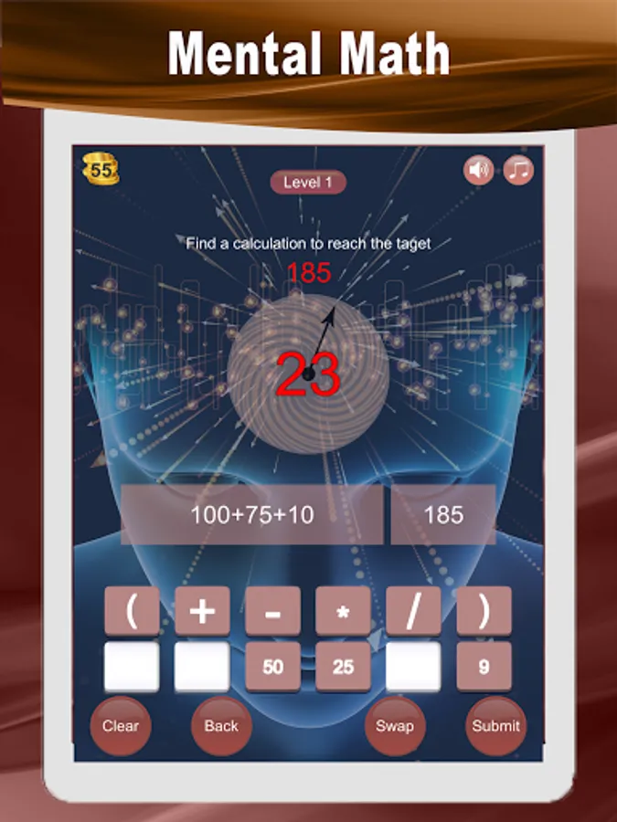 Number Scramble - Mental Math, Play this Scramble Numbers Game to find the calculation and improve your problem-solving skills. Keep your brain ticking over. Fun to play and educational. Become a mental math master! Foster a love of number. Number Scramble makes maths fun. Download Numbers Scramble - Mental Math for free and try it out. The aim of the game is to find a given number. This is a randomly generated number. You are then given six scrambled numbers and using add, subtract, multiply, divide and brackets you have to find the calculation to reach the target number. An example is shown here. Target number is 961 Given numbers are 100, 75, 9,8,7,6 and you can use ( * / + -) brackets, multiply, divide add and subtract. You do not have to use all the numbers. One answer is (100*9) + 75 – 8 – 6 =961 There are five levels for you to play so you can chart your progress. Level one is a simple way to start but you must achieve a certain percentage to advance to the next level. If you are feeling confident you can start at a more advance level. Basically this app improves your mental math and problem solving skills. There are daily challenges and a leader board so you can match your skills against others all around the world. Stimulating your brain with this mental challenge number scramble keeps you ahead of the game. Knowing your tables and remembering things you were taught at school will help. You need to know the order of mathematical operations (BODMAS or PEMDAS) but we have a crash course to help you remember this. Try it and give yourself a challenge and be proud of what you can achieve. Download Number Scramble - Mental Math today!!