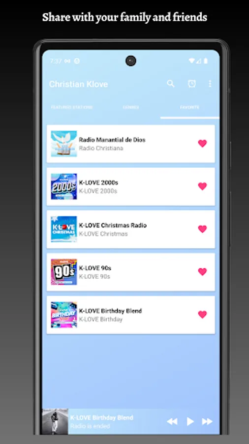 K-love Radio is the app you were waiting for, fast, light, available and online 365 days a year, 24/7, create lists of your favorite songs!