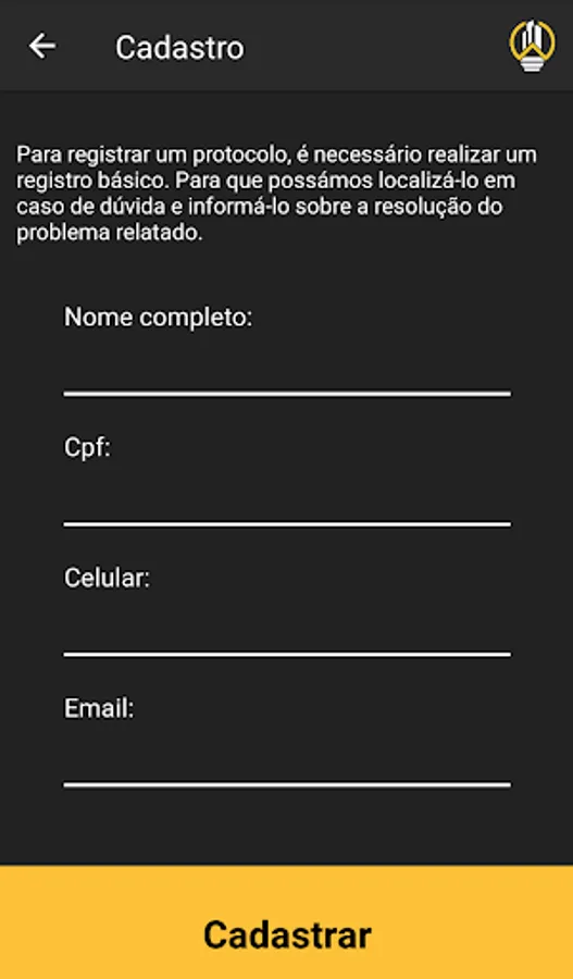 The purpose of the developed application is for the user to consult protocols and record problems within the scope of public lighting. The information is stored in a Wise Cities management system, and will be available only when there is connectivity to the internet and the server.