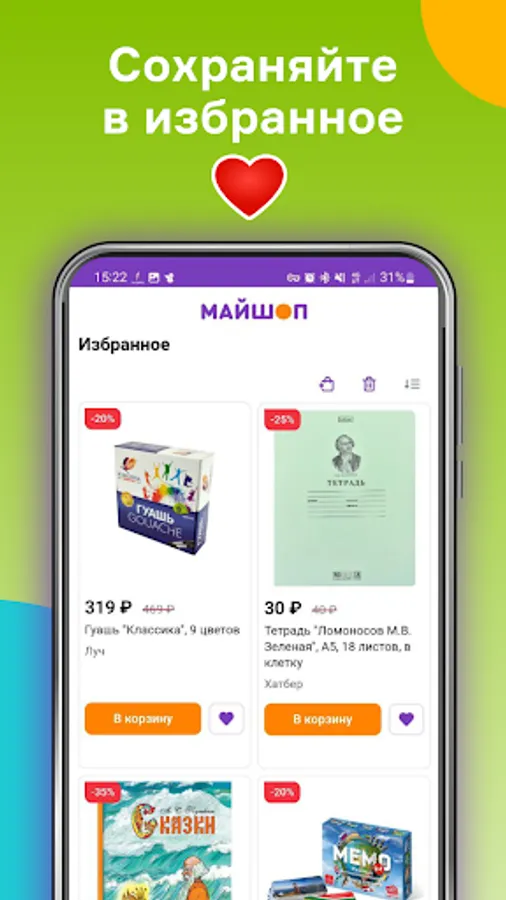 The Myshop online store is a bookstore, a toy and children's goods store, an online store for textbooks and educational literature, as well as a gift store, stationery, music, software and films, gardening and gardening products. Discounts up to 25%.
