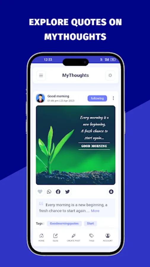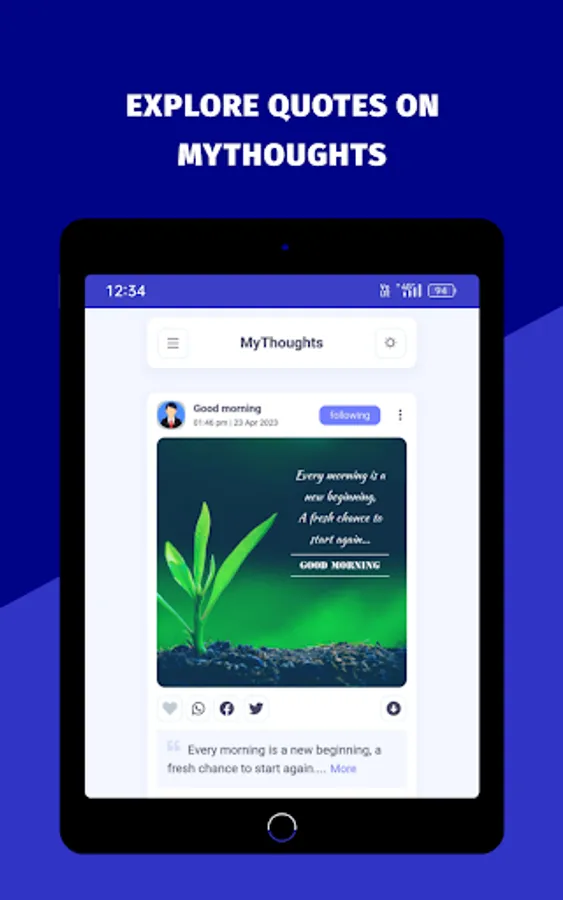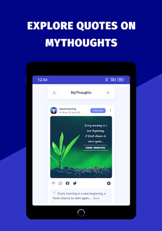 MyThoughts a platform there you can READ and SHARE your thoughts & quotes easily and Download on one click. Its a free platform for you. In Few steps you can share your thoughts easily.