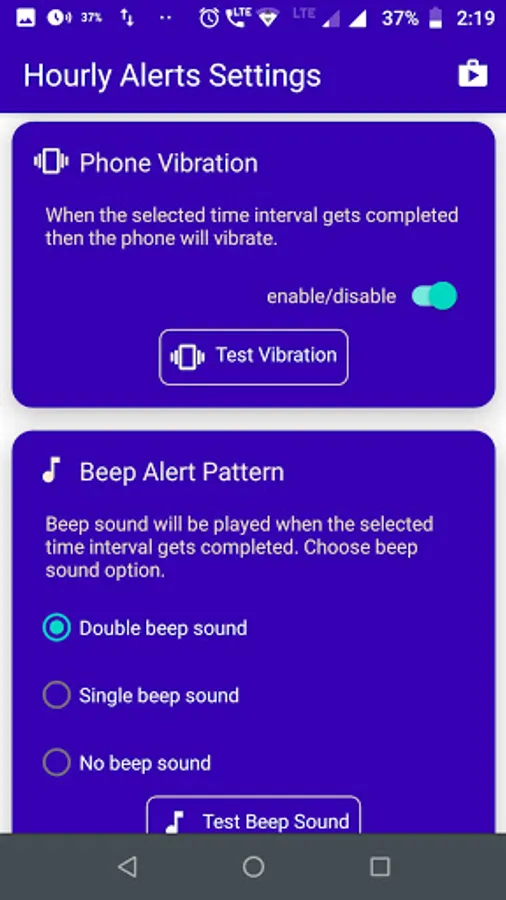 - Time Interval alerts (5min, 10min, 15min, 20min, 30min, 1Hour)