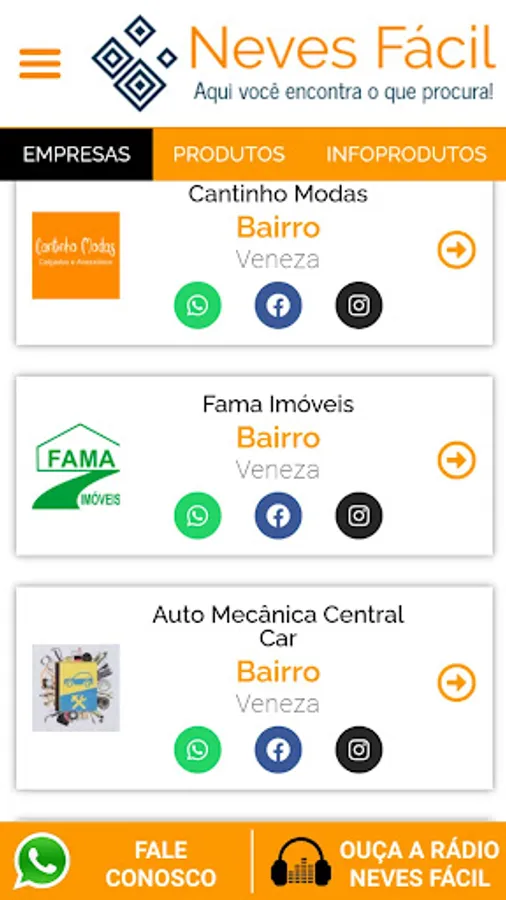 The Neves Fácil App, aimed at the search for business, public agencies in the city of Ribeirão das Neves and entertainment.