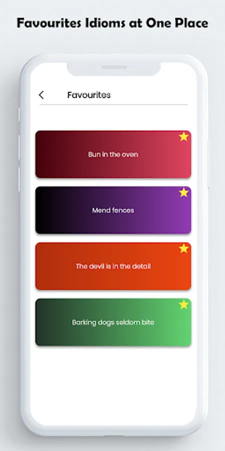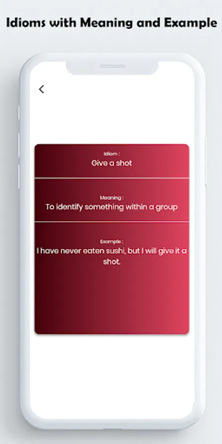 This app will assist you learn Idioms and Phrases in English very easily and effectively. we've essential English Idioms, Phrasal Verbs, Proverbs And Slangs collected and refined from many
