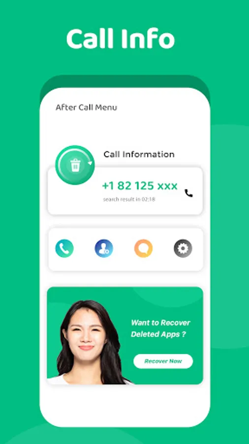 Here is where App Recovery can help you restore any app that you may have uninstalled in the past. The smart phone lookup screen shows who is calling you before you pick up the call.