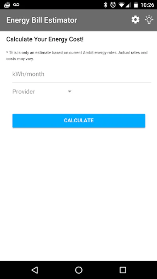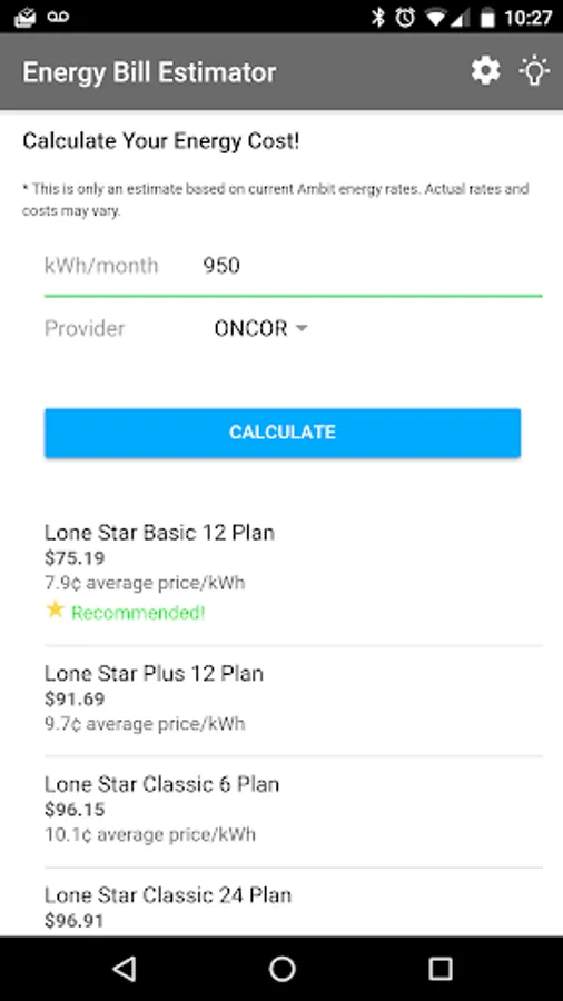 Current Electricity rates used for calculation are hosted in the cloud so the rates can be easily updated and synced to your phone without.