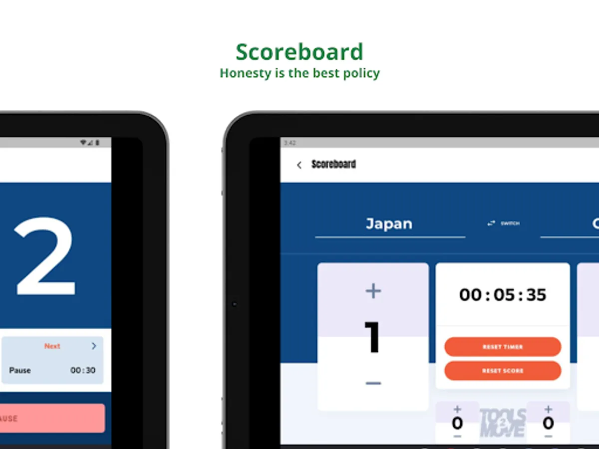 - Scoreboard: Enter team names, set the timer, and easily keep track of scores.