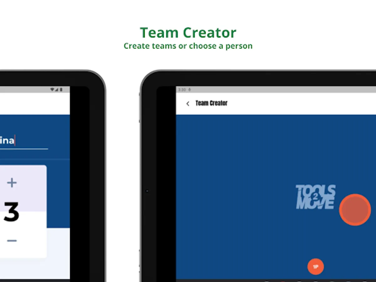 - Team creator: Specify whether you want to select one or multiple "players" or choose how many teams you want. Have the kids place a finger on the screen, and the team creator will select one or more "players" or create random teams.
