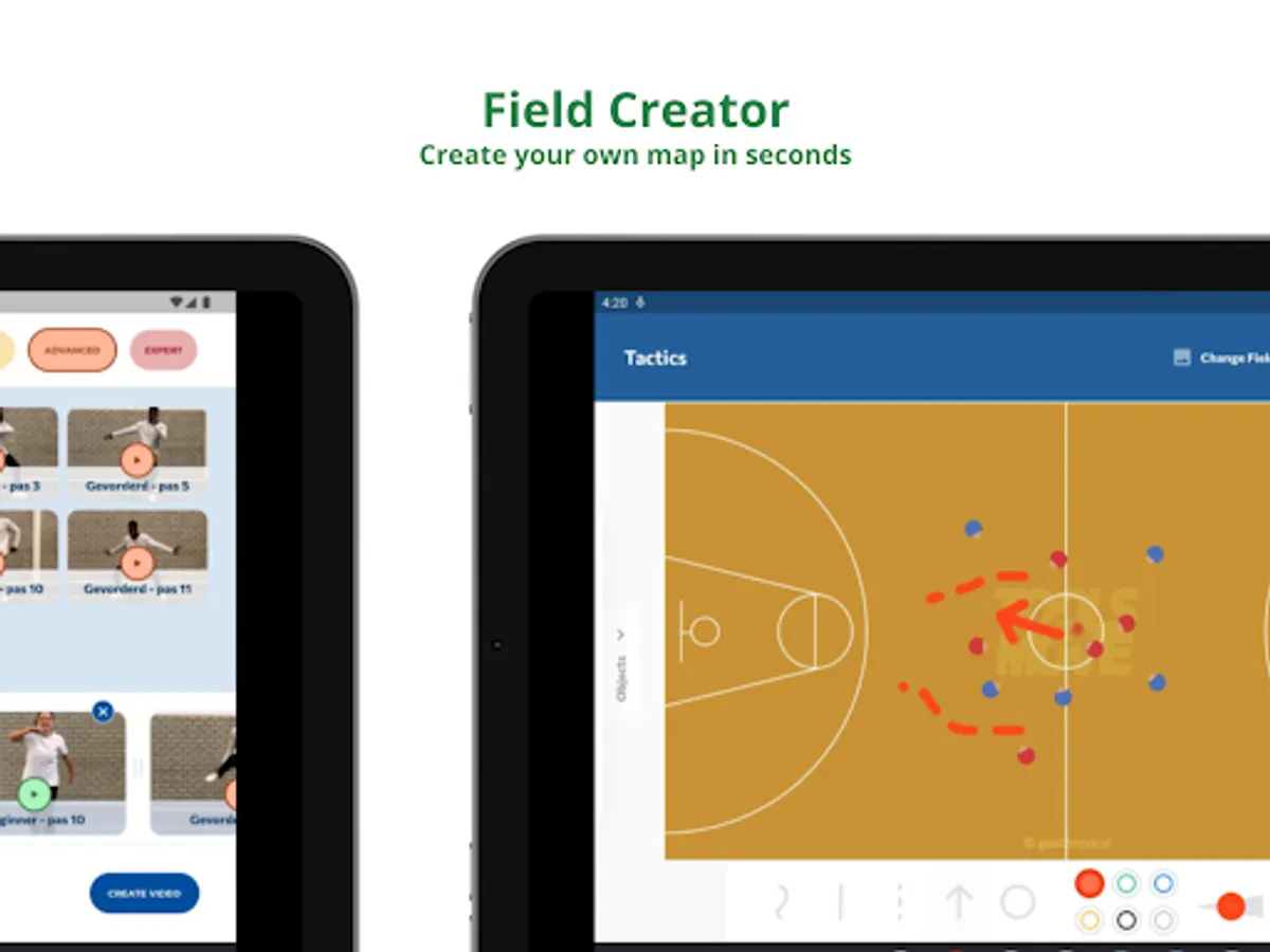 - Field creator: Choose objects from the legend, place them in your own chosen "background," and create a convenient layout for your lessons. Project it on a screen or mirror your screen on a TV. You can also use it as a digital whiteboard to give instructions.