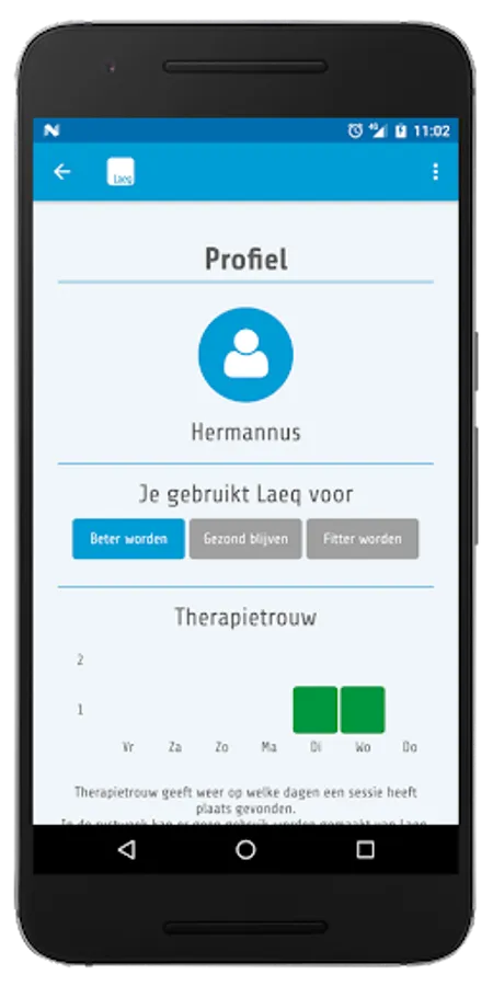 Use your Laeq Health wherever you are, whenever you want. Keep your own scores and get insight into your results and reach your goal: Get better, stay healthy and get fitter.This app only works with a Laeq Health product.With this app, you get the right treatment and you have your own diary feature That keeps track of your progress.