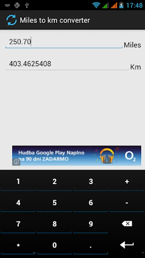 Miles to kilometers converter (+ kilometers to miles converter) - simple and quick application.