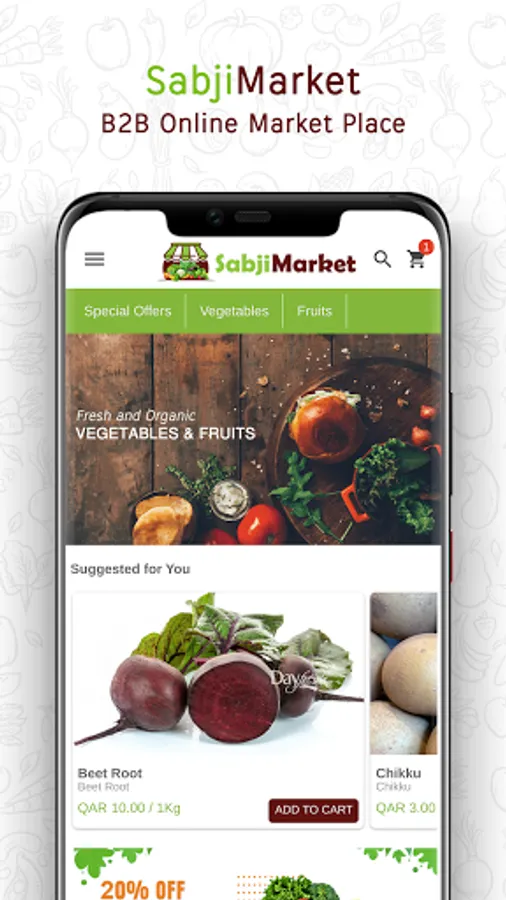 A B2B Online Marketplace for retailers using technology integrated supply chain.App can be used to purchase quality fresh produces at a best price.We source fruits and vegetables from the best farms around the globe and handled hygienically through out the process.