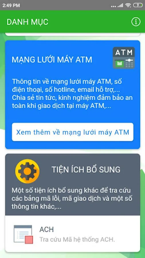 The application supports information lookup of some banks in Vietnam such as Agribank, Vietcomabank, ACB, Techcombank, BIDV, ... In addition to the address, the application also provides other information such as phone, fax, money transfer code. , ..