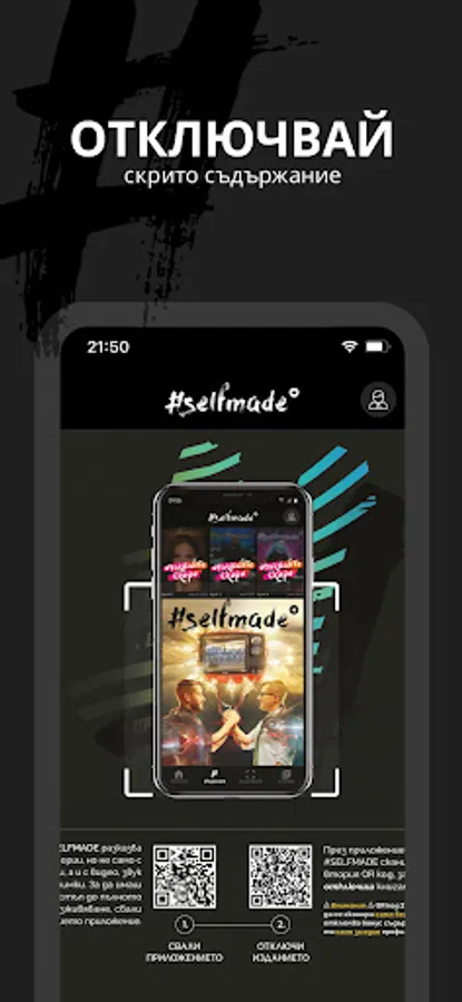 В приложението Selfmade ID създаваш свой профил, за да отключиш скрито съдържание към книгите, които държиш в ръце. И да се насладиш на ЧЕТЕНЕ 2.0, като достъпиш: