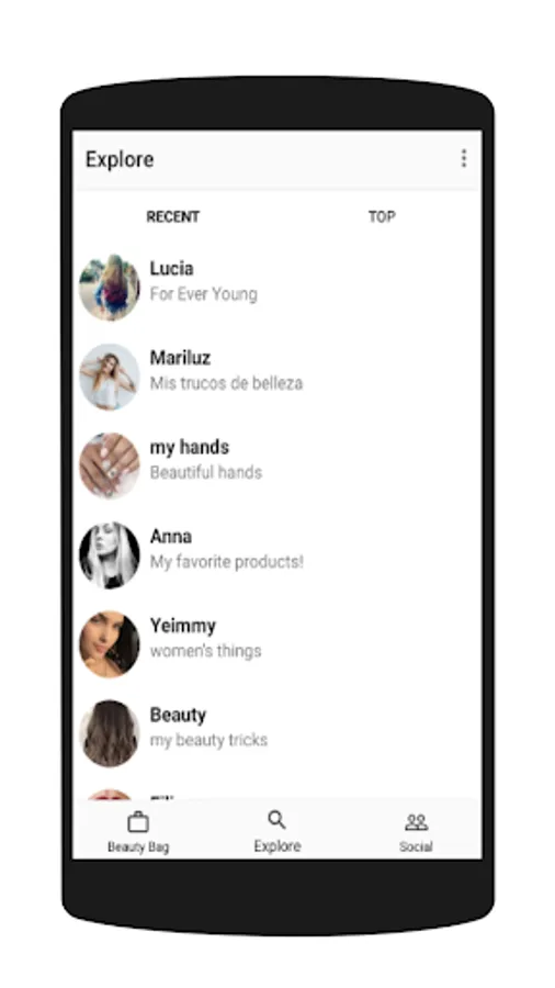 Fill your digital beauty bag with your best products. Users with many followers and likes are displayed in the "explore section"