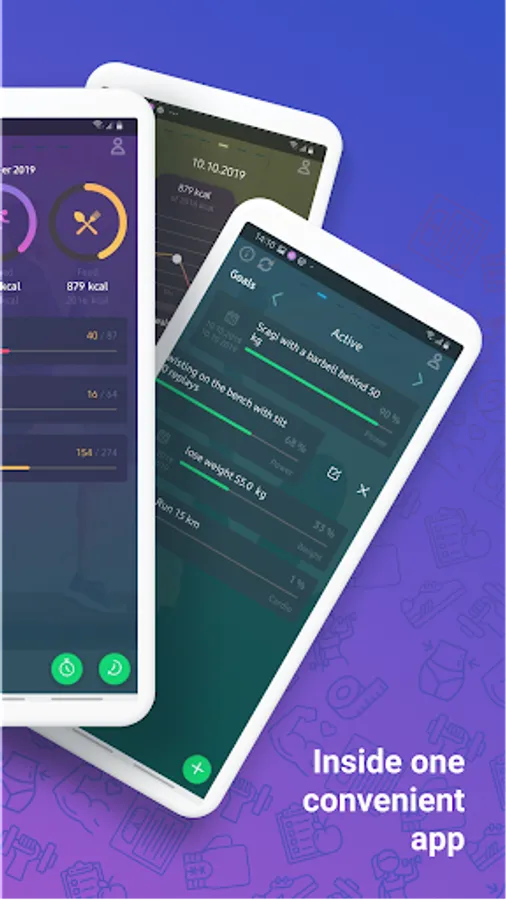 Set goals for yourself and track the progress: more than twenty customizable programs - weight loss / gain, workouts, activities. The application takes into account your physical parameters and provides personalized recommendations for achieving your goal, individually.