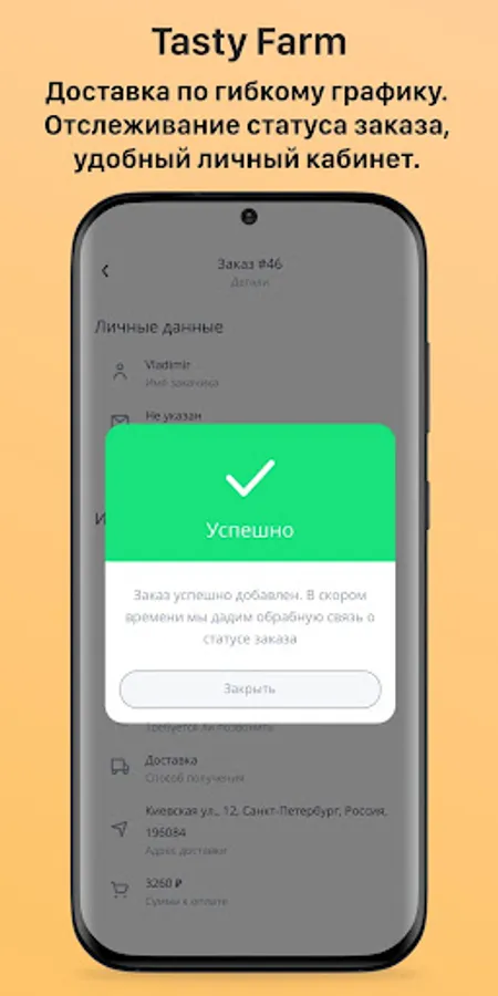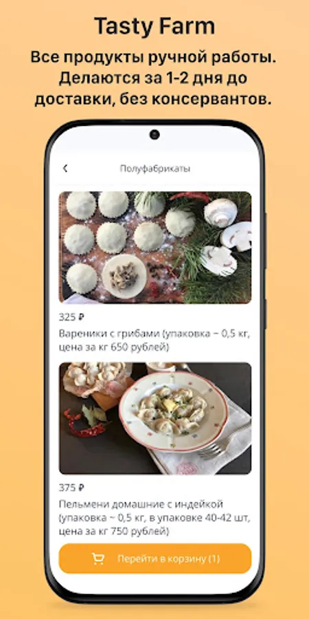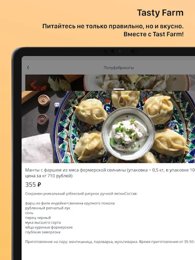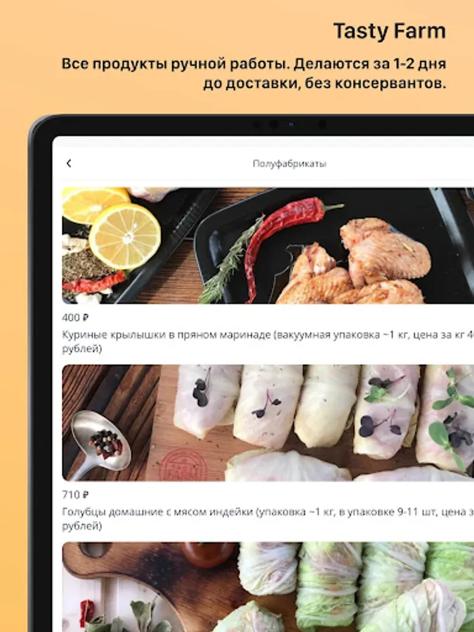 The range is constantly updated with new positions. Follow us on Instagram (in-app link). There we hold contests and give out promotional codes, follow the news and eat deliciously and properly with Tasty Farm.