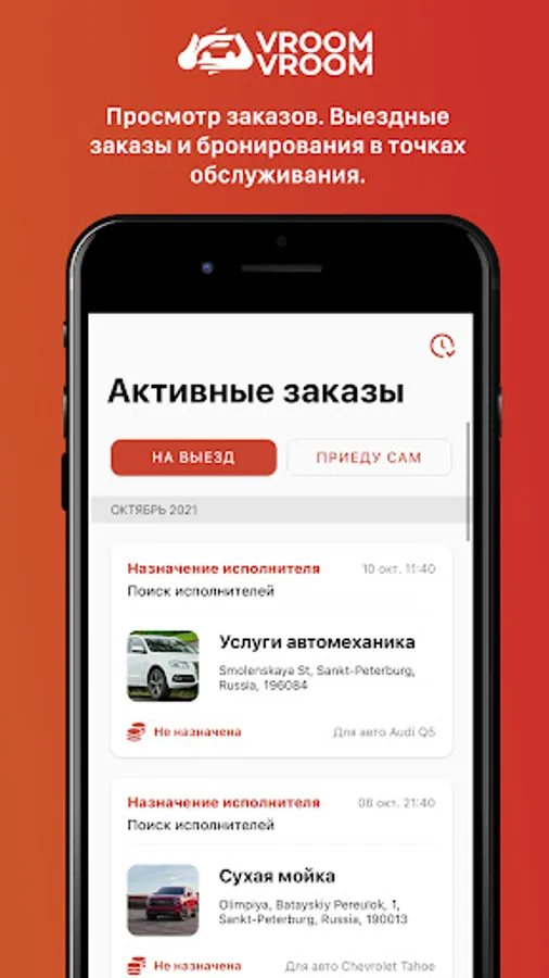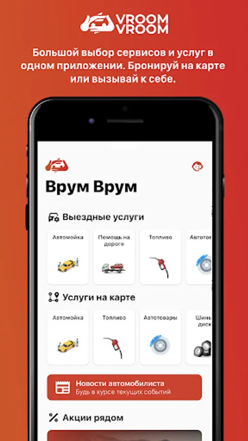 VroomVroom is an auto service aggregator that brings together everything you need for a wide variety of life situations. More than 400 proven performers from Moscow and the Moscow region are already working with us, who are ready to provide services anywhere and at any convenient time.