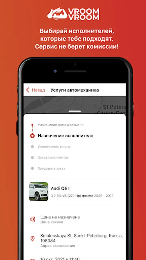 Using the VroomVroom application, you will find a suitable contractor or car service, book a visit or call a specialist to your place in a few minutes.