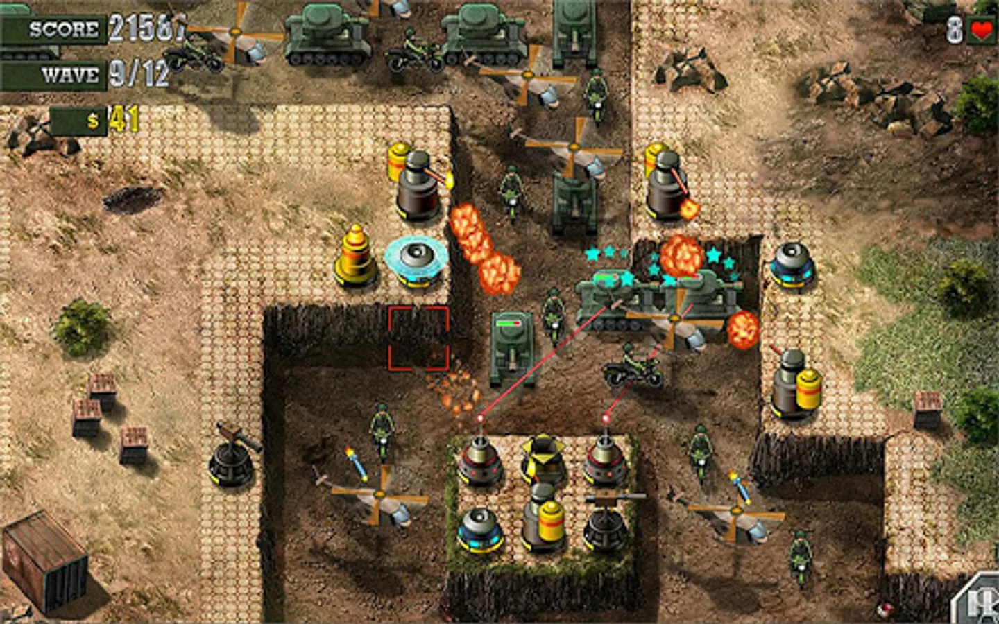 Defend the Bunker has the best elements of tower defending games and also includes original features such as MMG, Flame thrower, Slower tower, Bomber Tower, Missile towers and Laser Tower to increase your defense. Also you have air strike and mines available for the tough times.