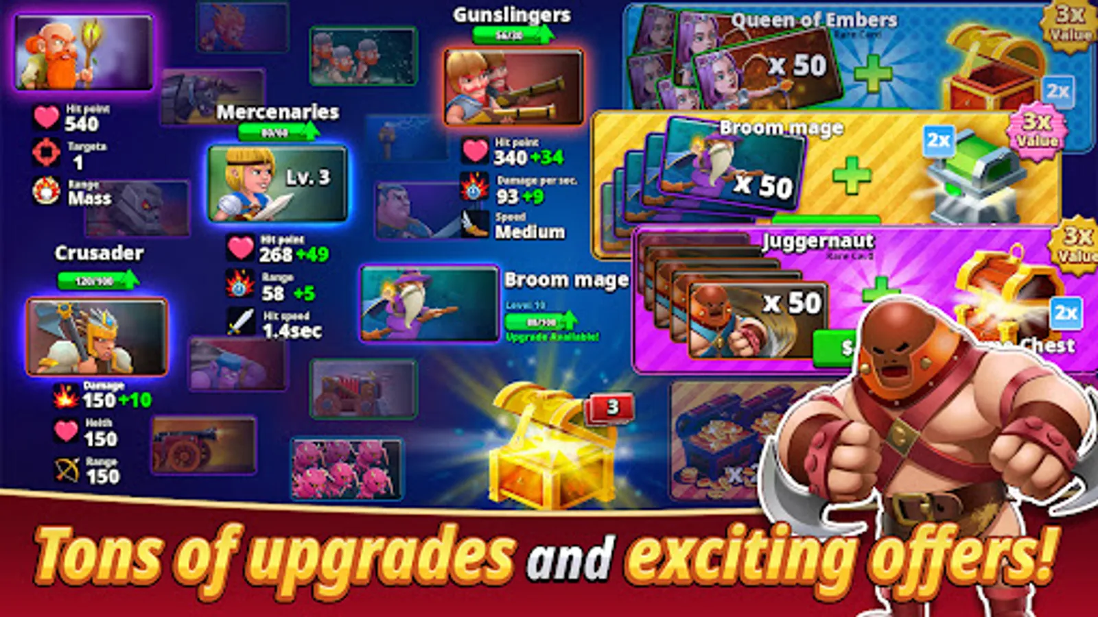 • Collect cards to unlock and evolve your troops, allowing them to gain powerful and unique abilities!
