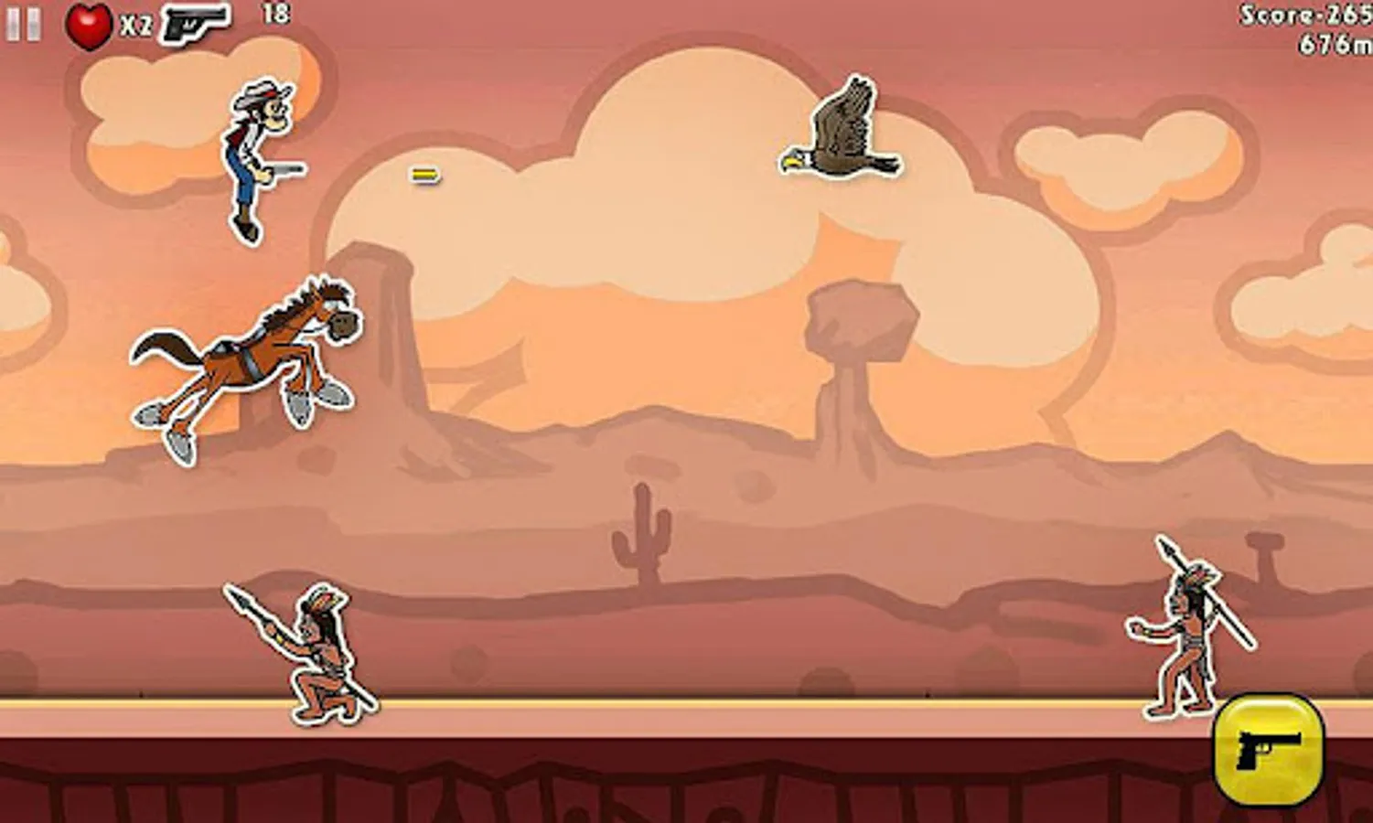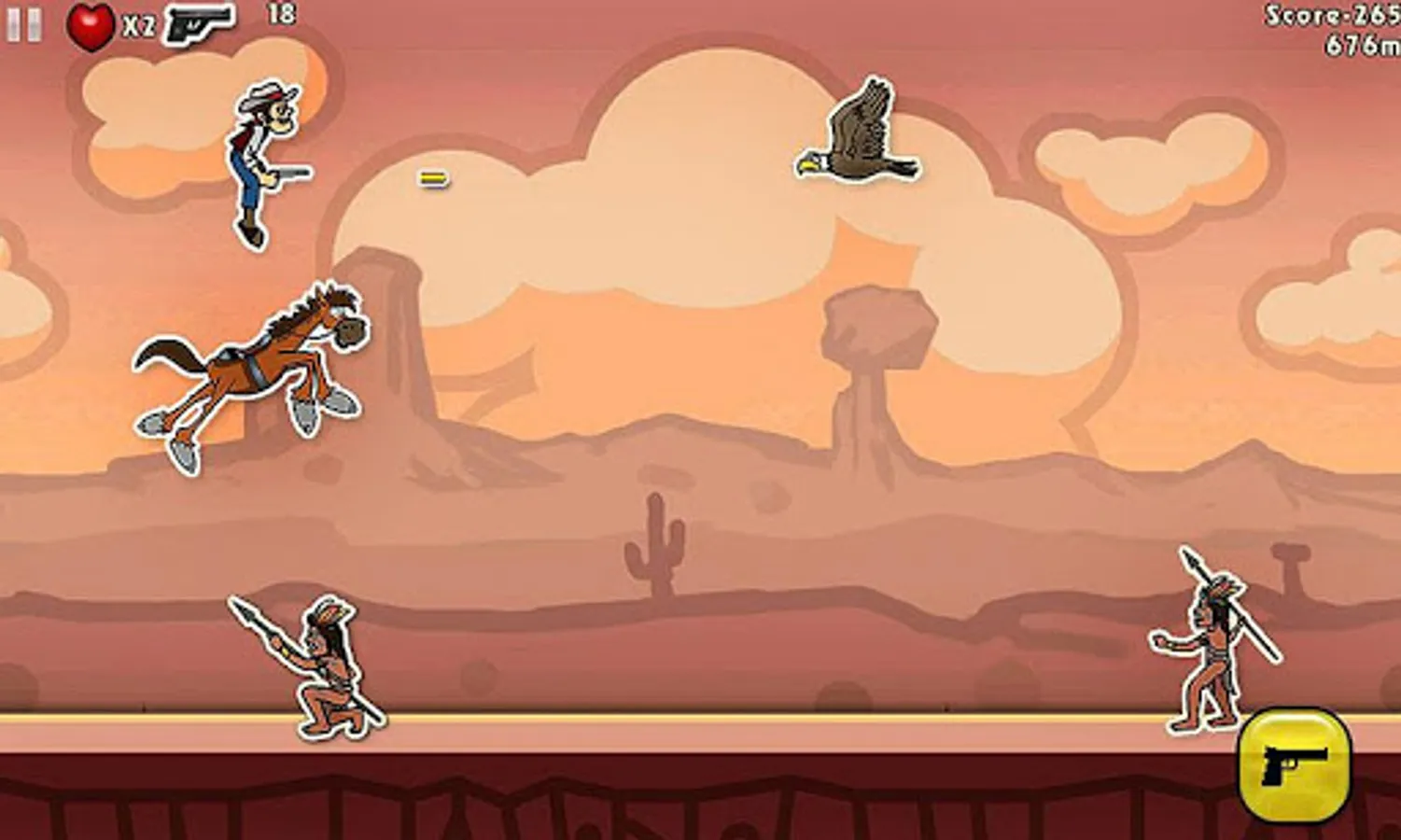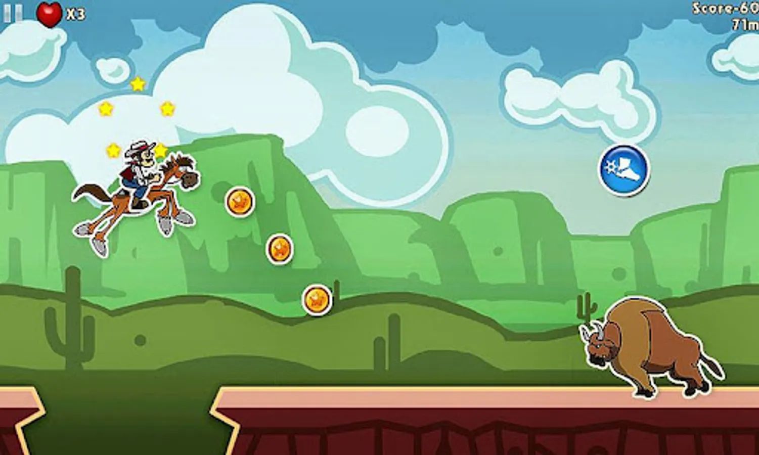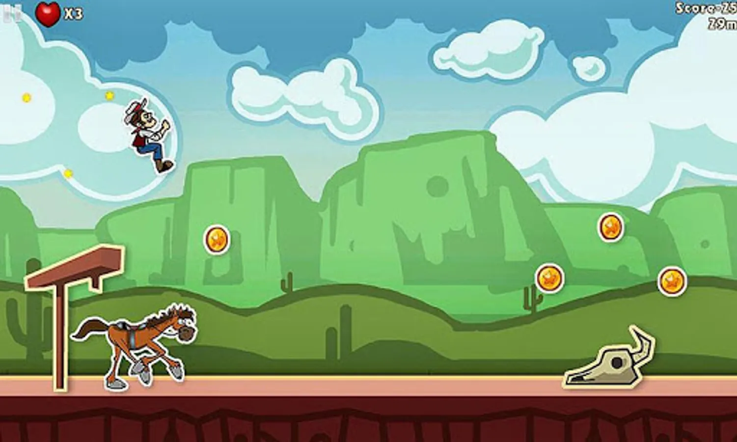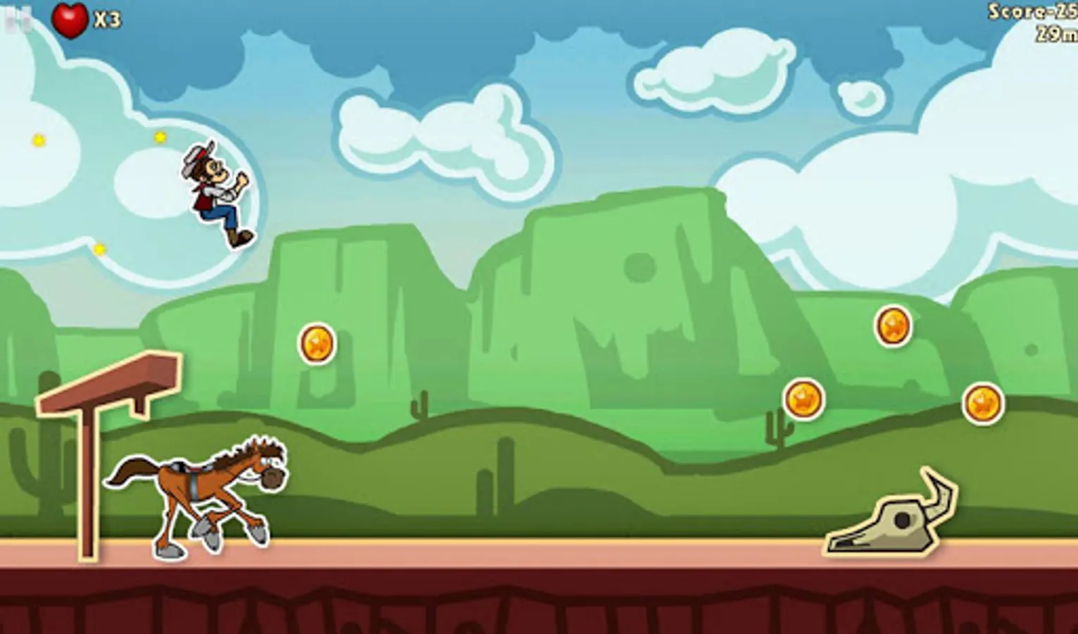 Jump over to collect coins & use different Power-ups in the air. Be sure that you have to land safely. The Amazing Cowboy game is challenging still easy to play.