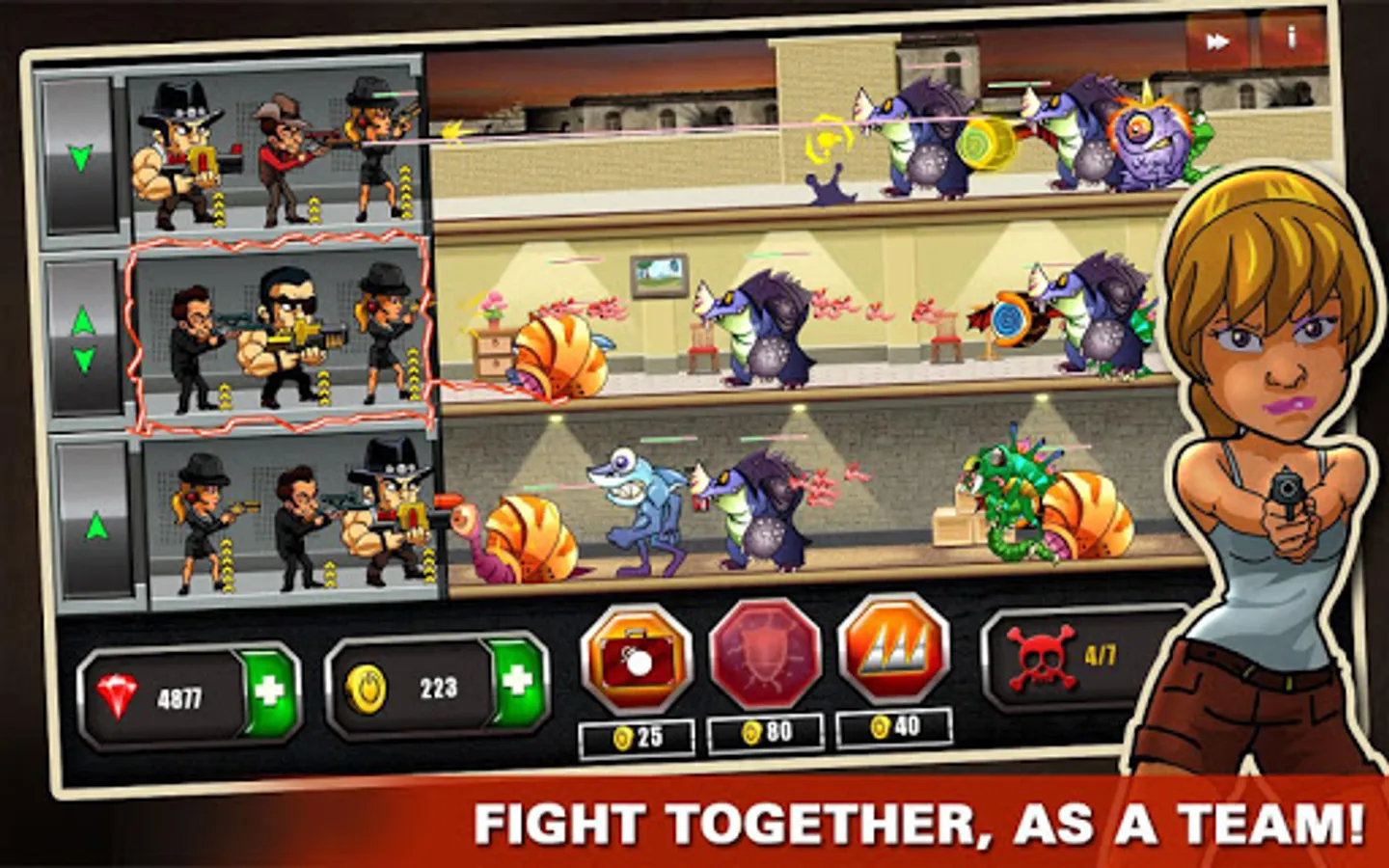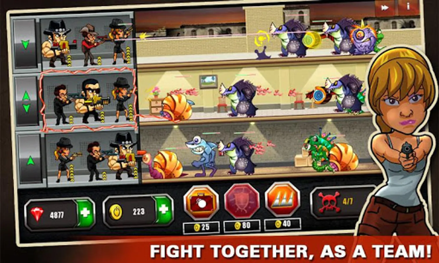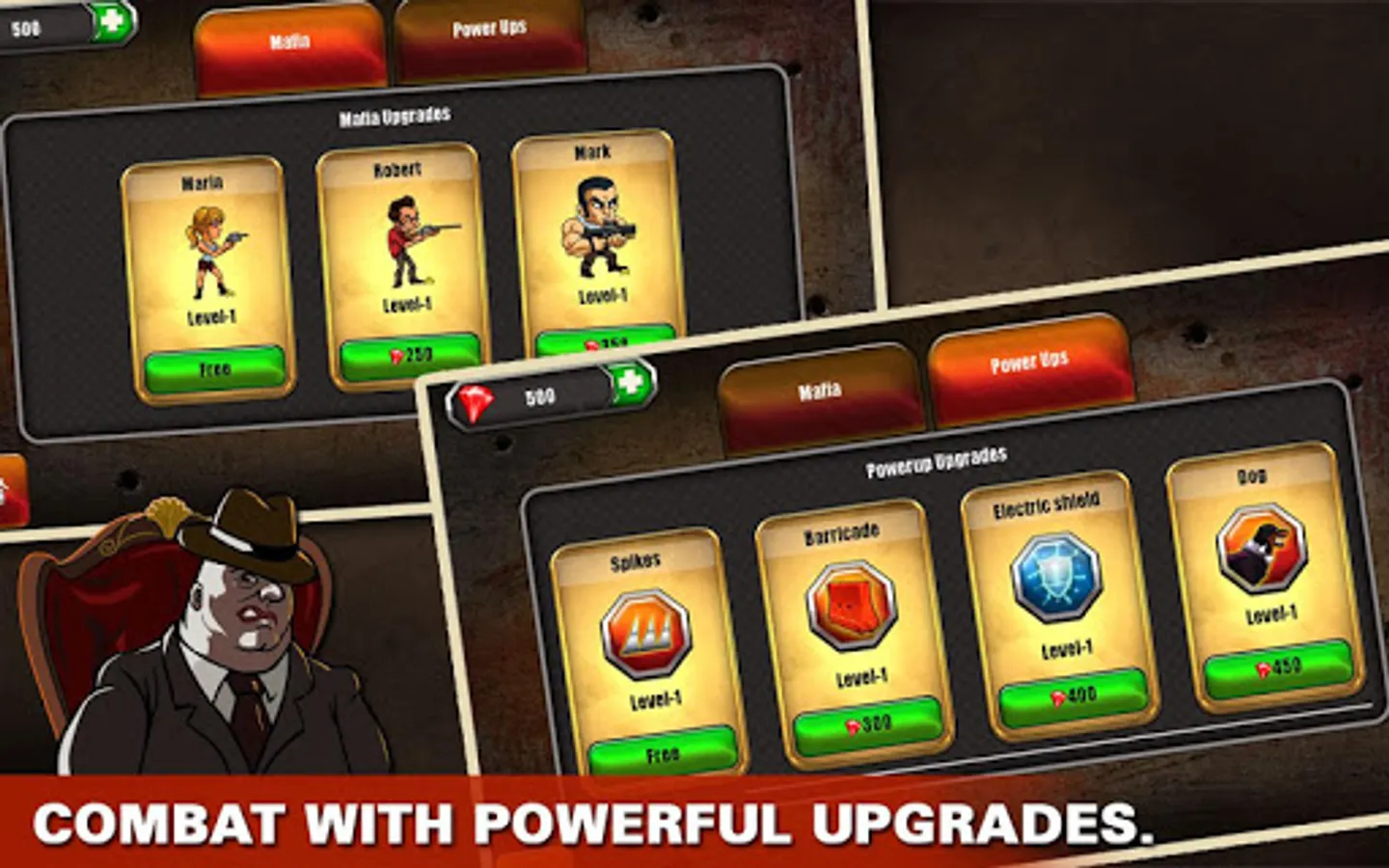 Upgrade your mafia team to contra monsters, and equip them with more powerful weapons and powers