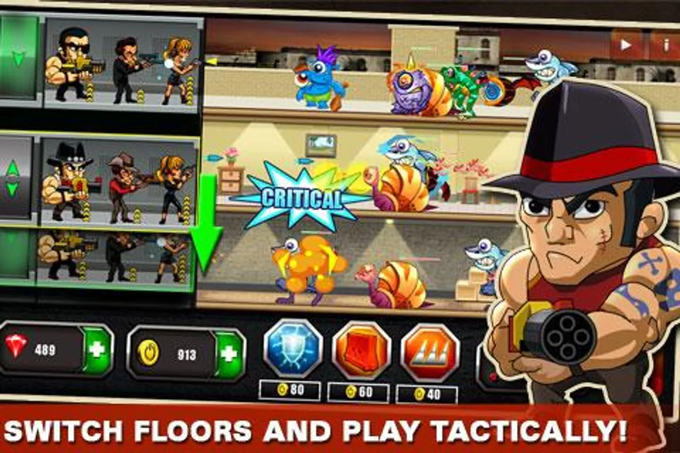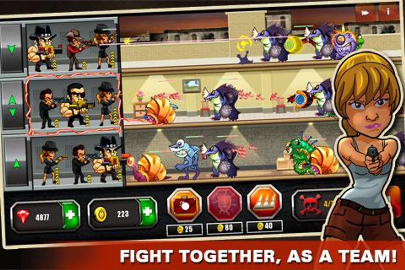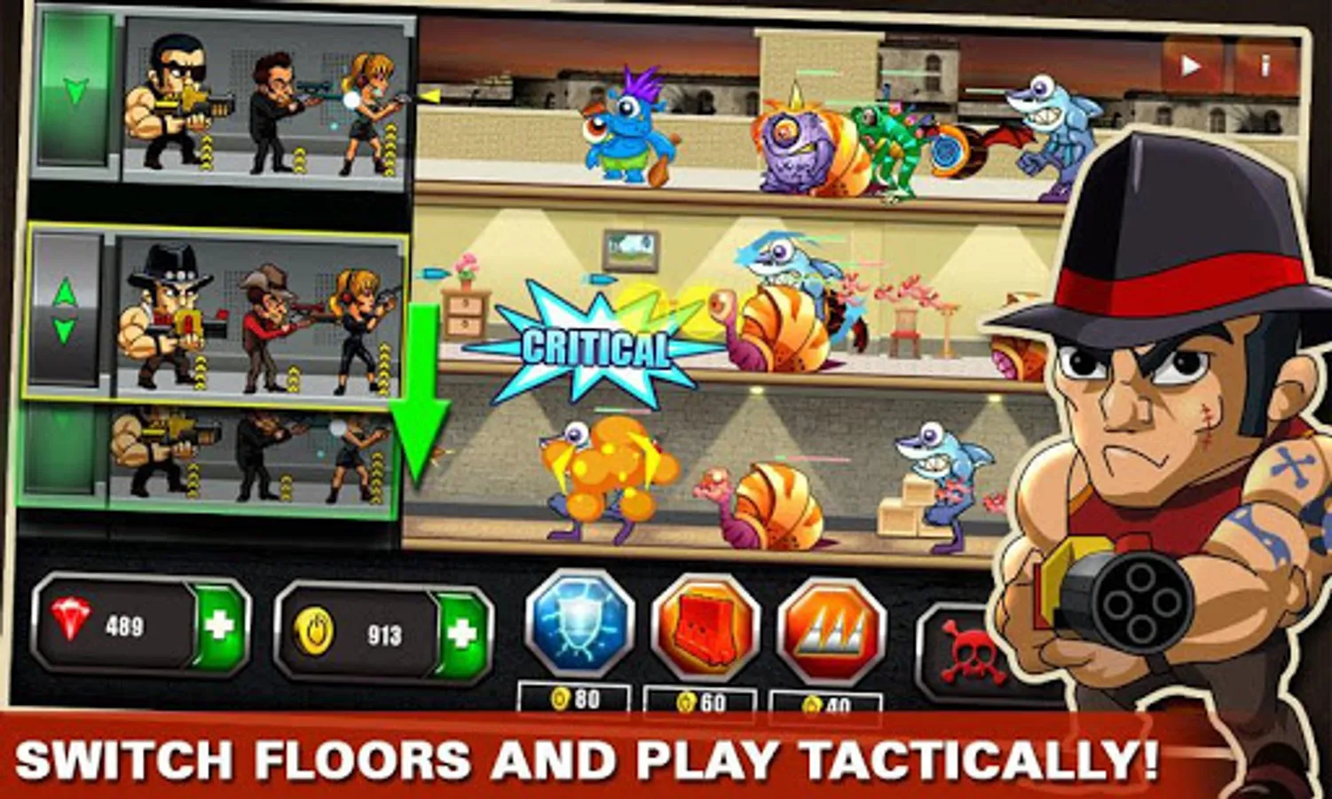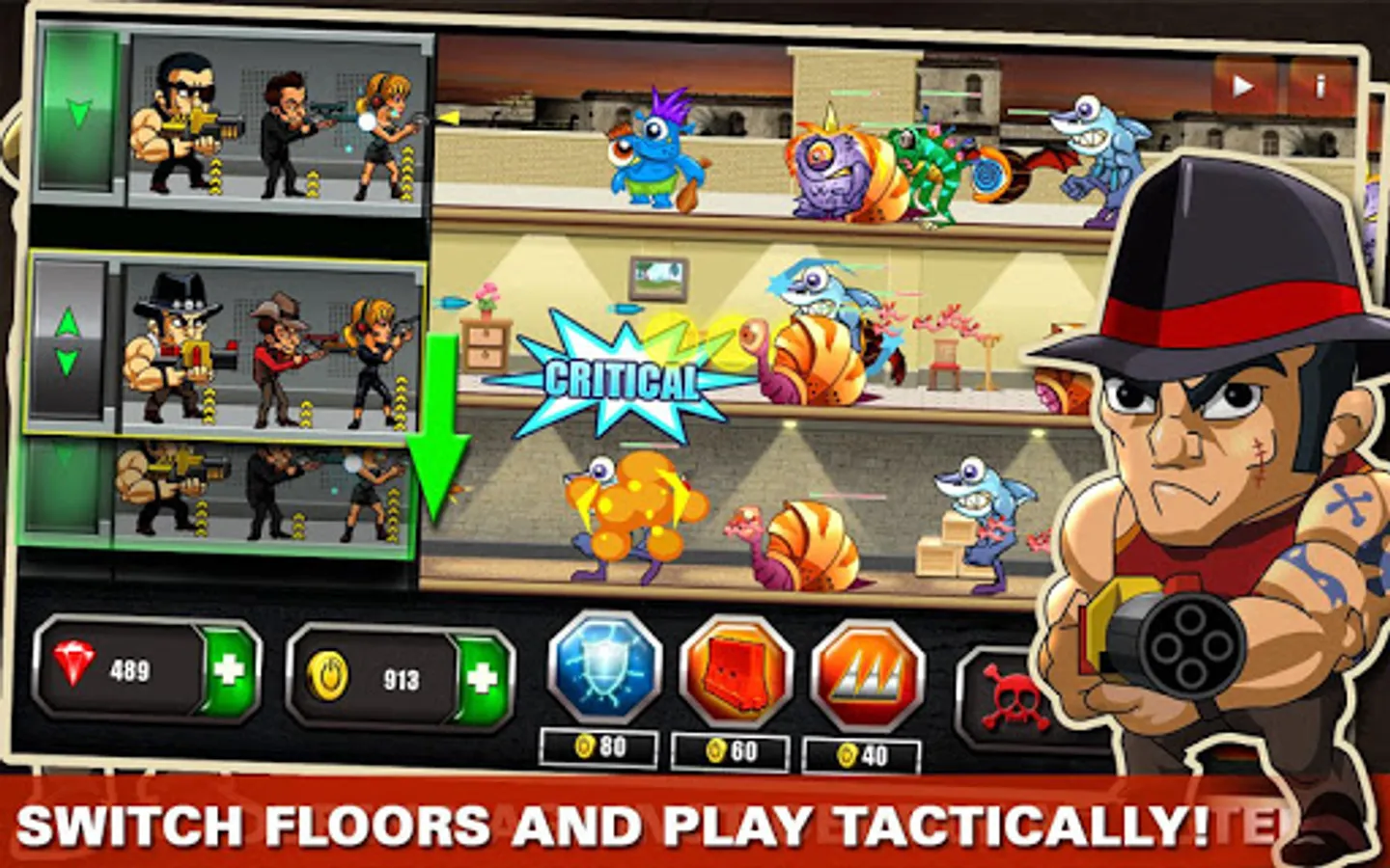 Upgrade your mafia team to contra monsters, and equip them with more powerful weapons and powers