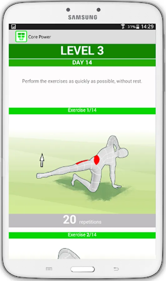 You can get the PRO version for unlimited further improve your torso and abdomen, which includes more than 3 levels: Hard, Heavy and Expert.